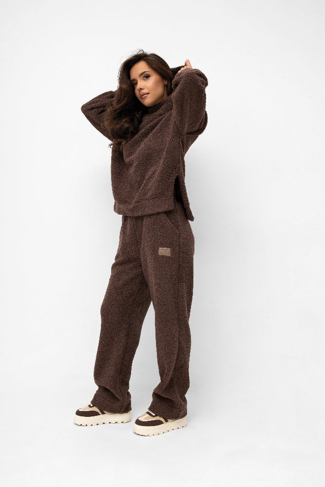 Spodnie damskie z ozdobnym paskiem i szeroką nogawką