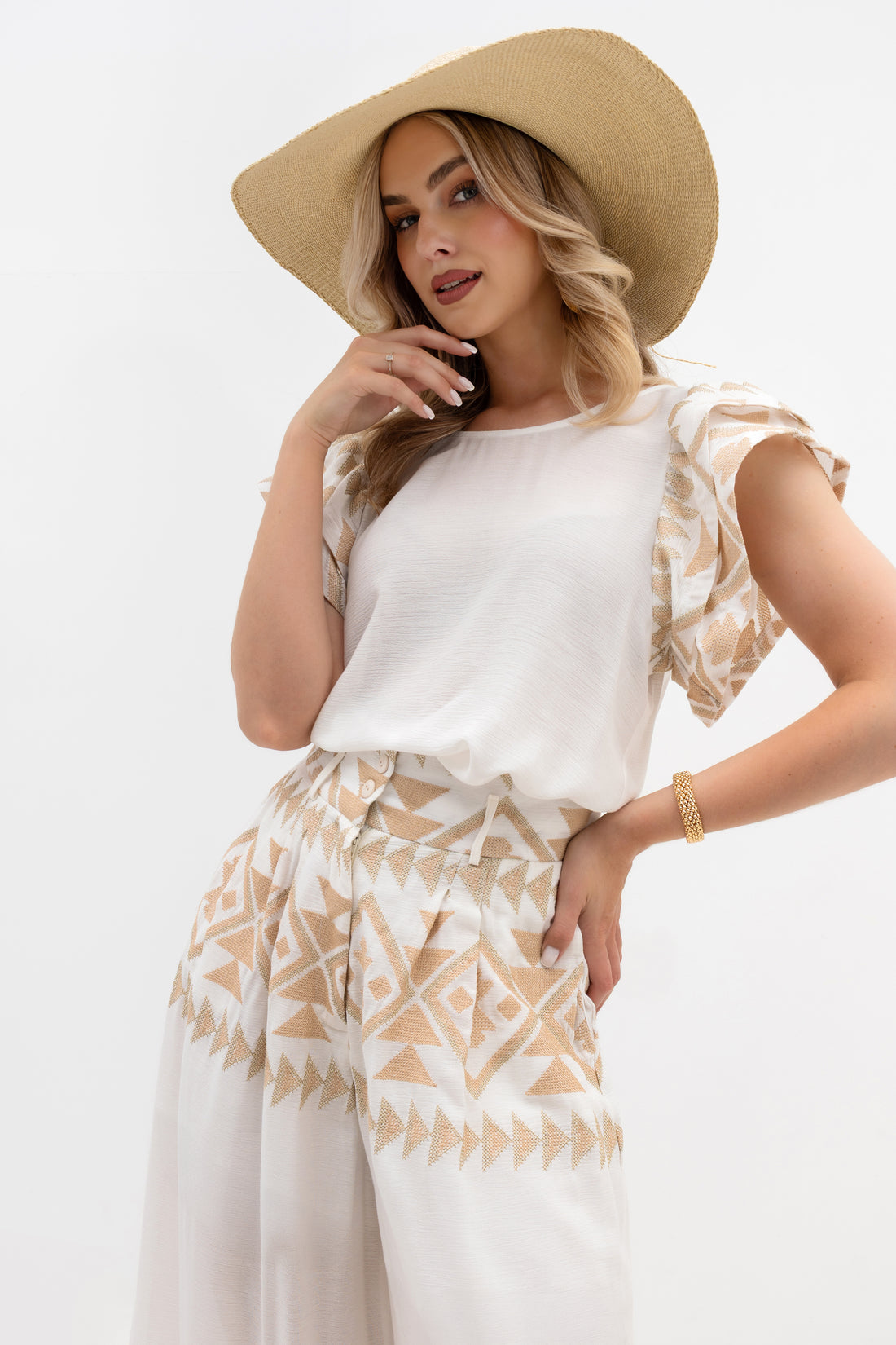 Bluzka z haftowanymi falbanami i wiązaniem na plecachBluzka z haftowanymi falbanami i wiązaniem na plecach
