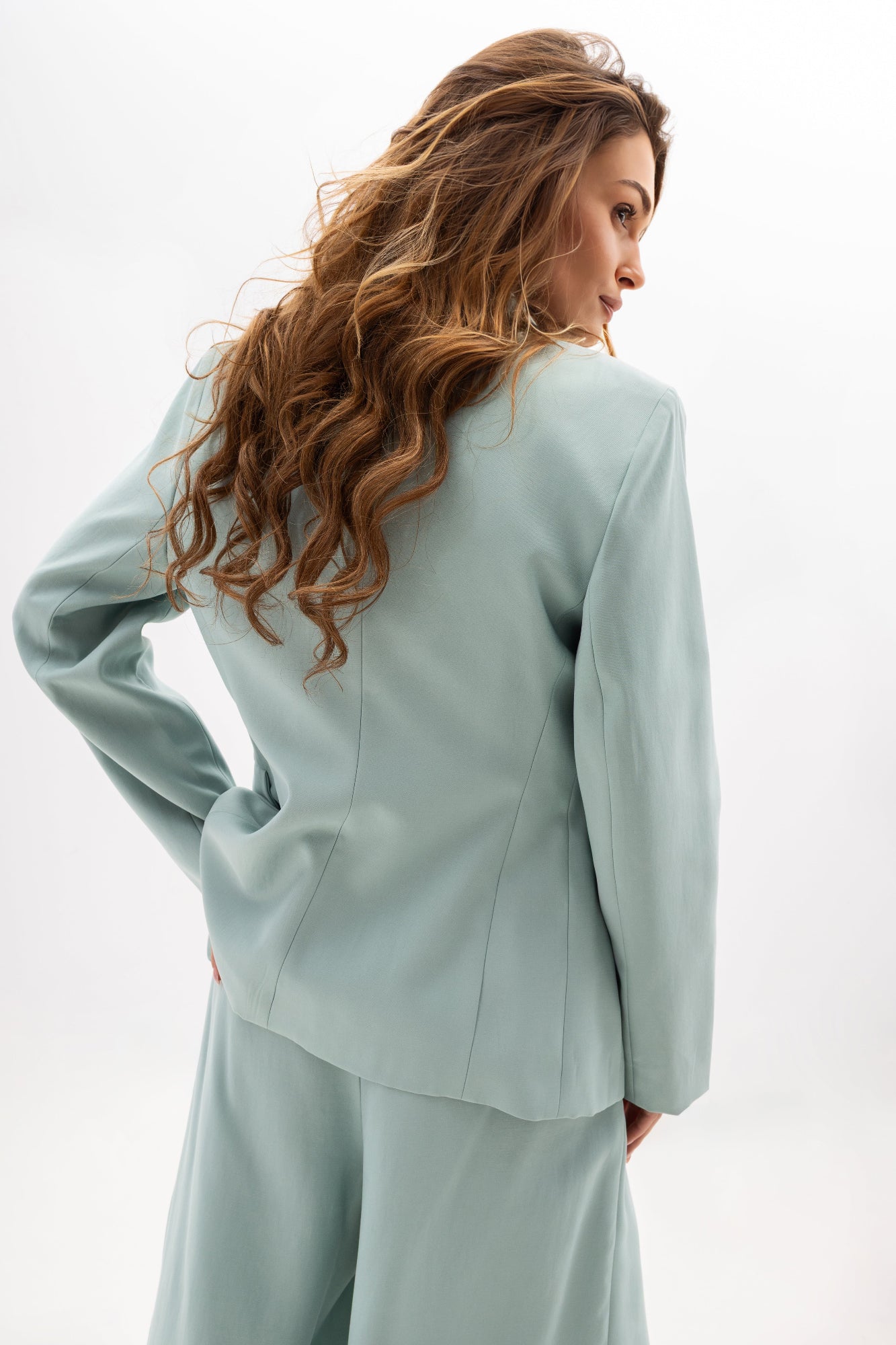 Model został uszyty z wysokiej jakości tkaniny, w której dominuje wiskoza (79%) z dodatkiem poliestru (13%) i nylonu (8%). Dzięki temu żakiet jest miękki w dotyku, przewiewny i odporny na zagniecenia. To propozycja dla kobiet ceniących wyrafinowaną prostotę, komfort i ponadczasowy styl – niezależnie od okazji.