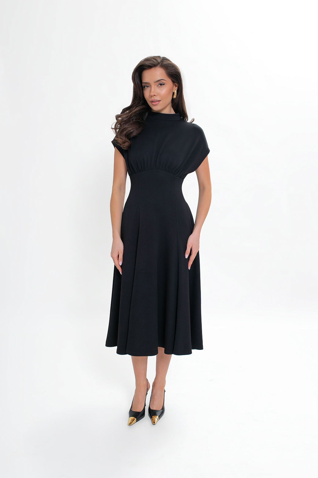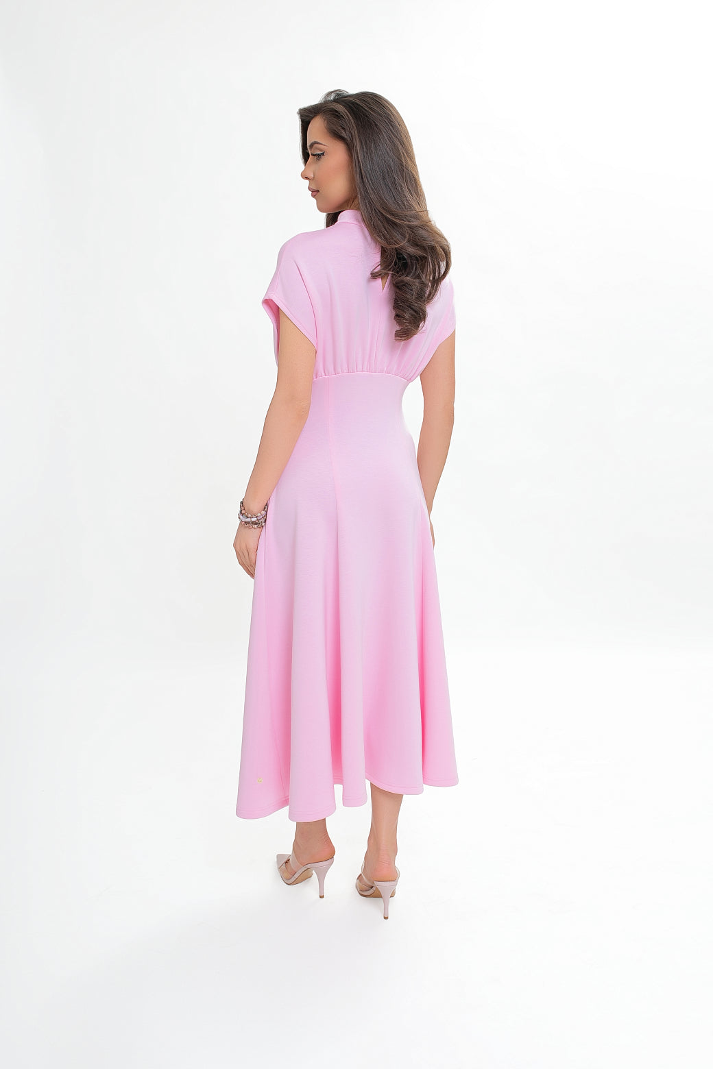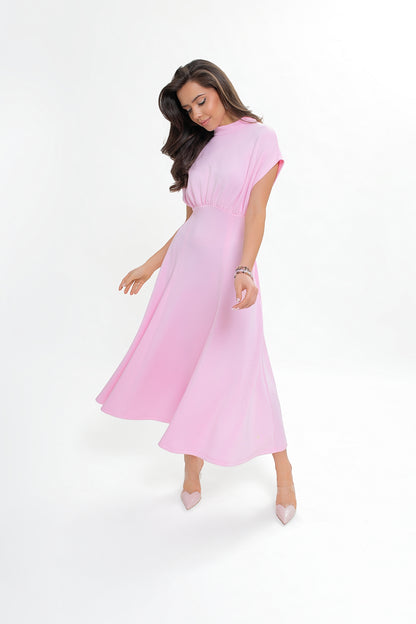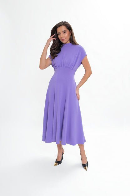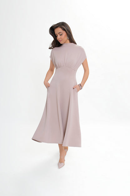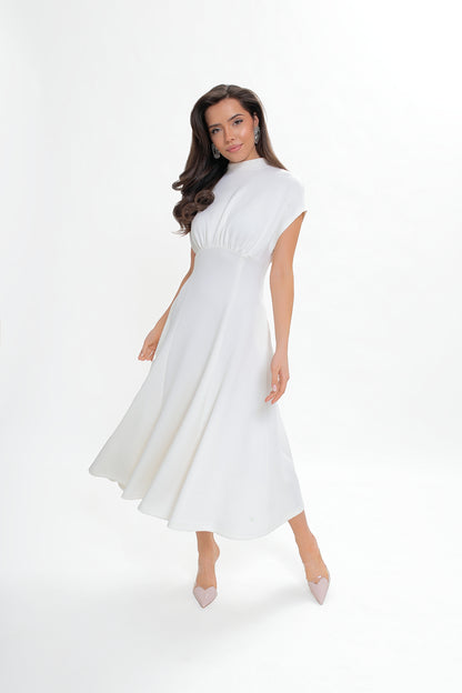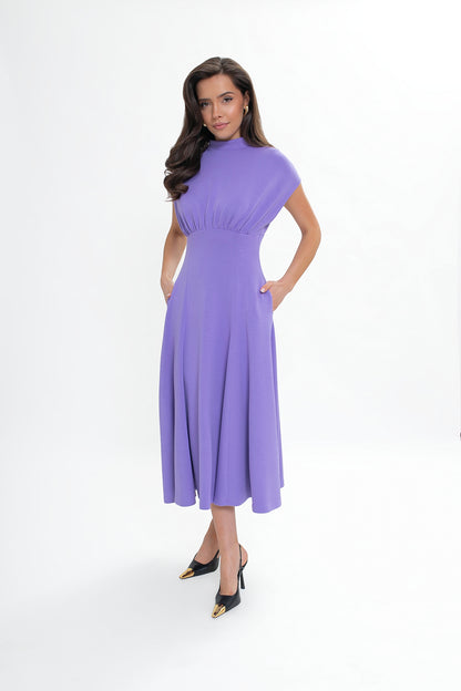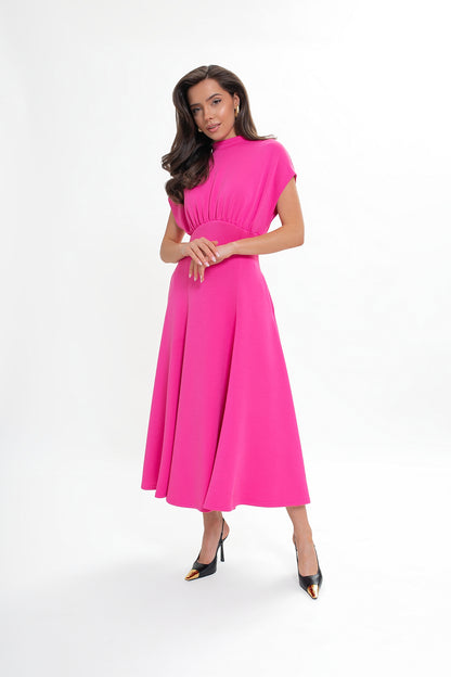 Sukienka midi z dzianiny nurek – rozkloszowana