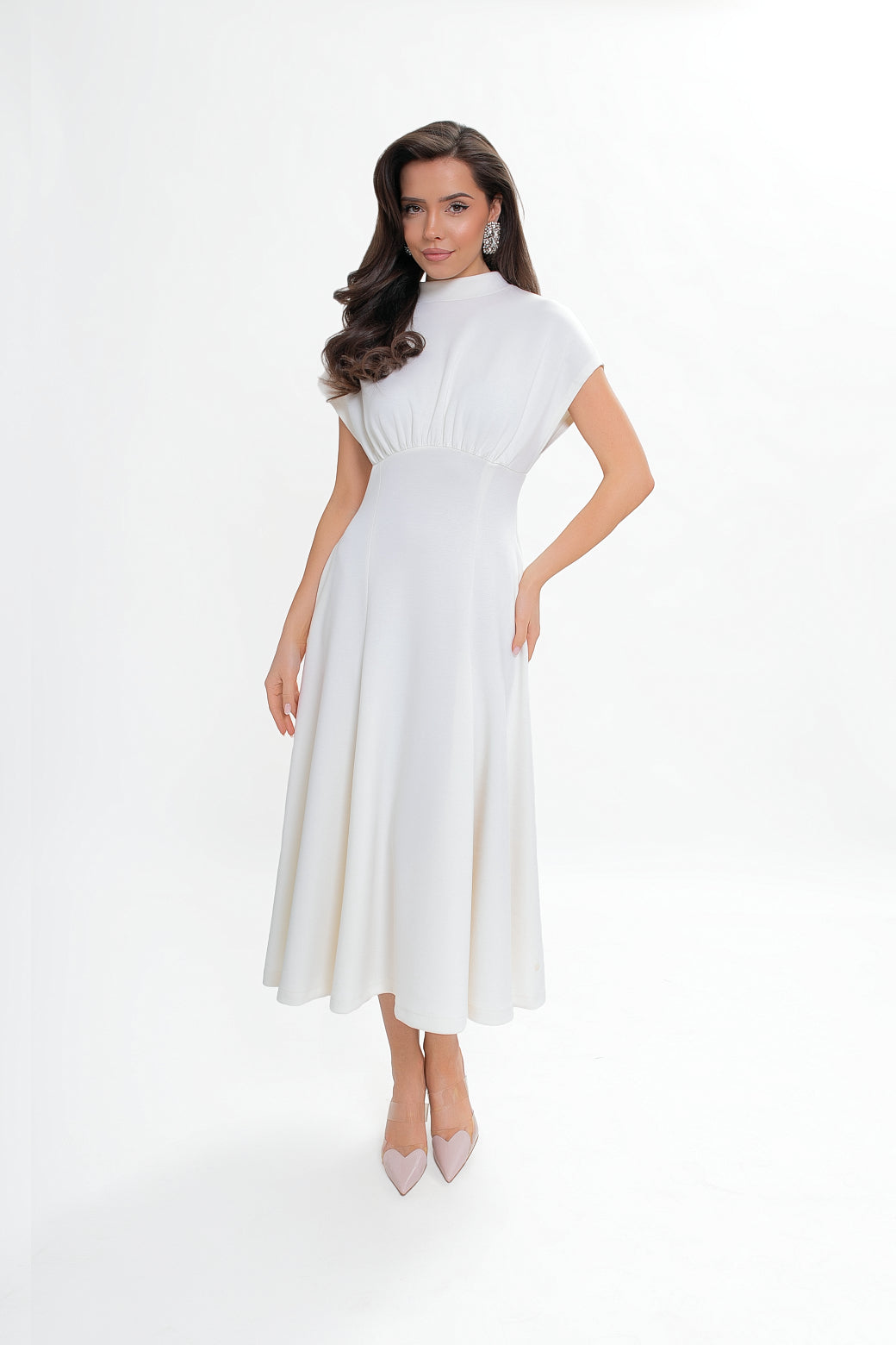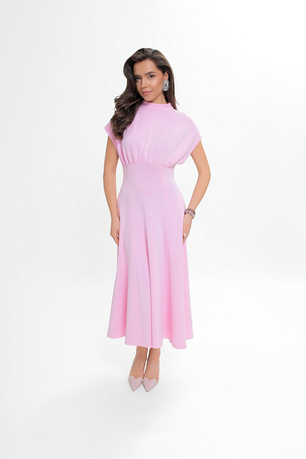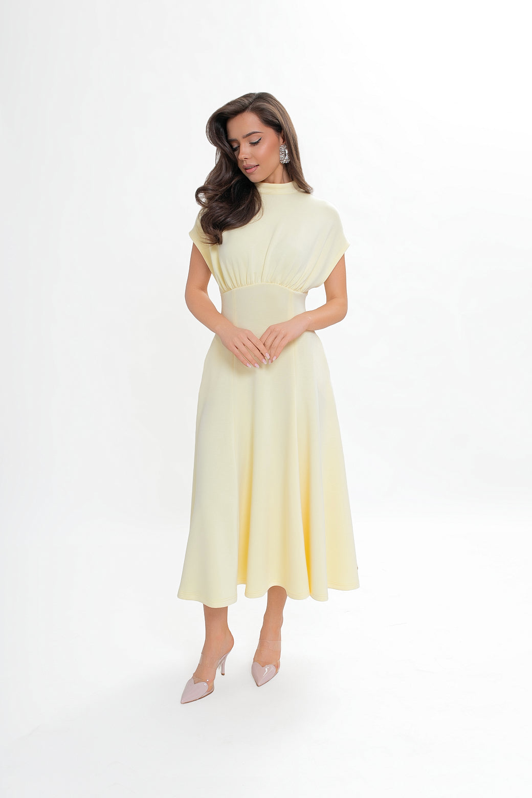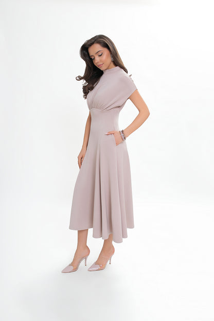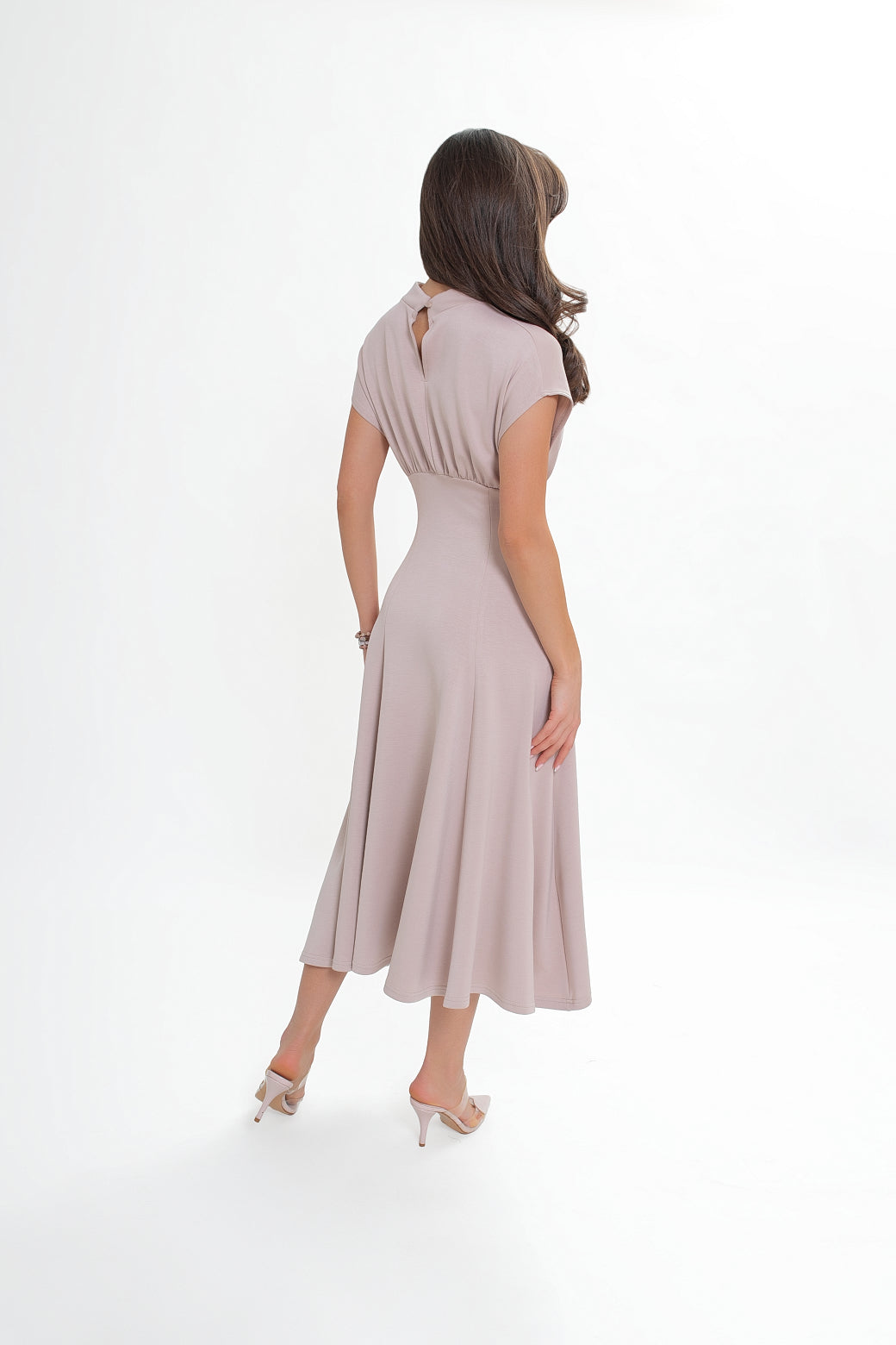 Sukienka midi z dzianiny nurek – rozkloszowana