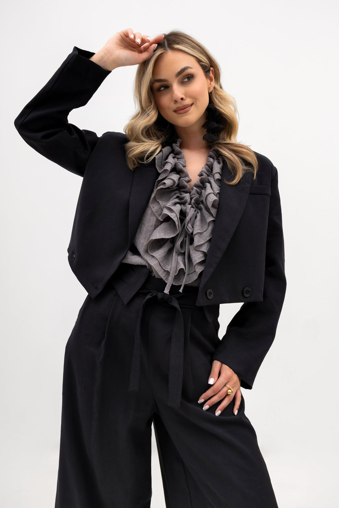 Krótki żakiet dwurzędowy – luźny krójKrótki żakiet dwurzędowy – luźny krój