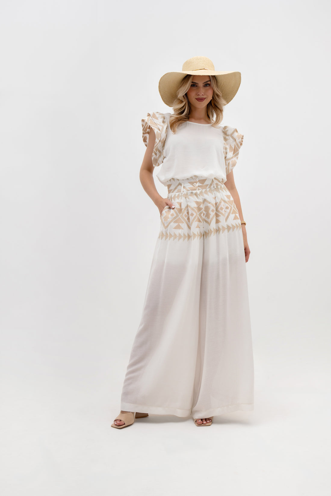 Spodnie o luźnym kroju z haftem i szerokimi nogawkamiSpodnie o luźnym kroju z haftem i szerokimi nogawkami