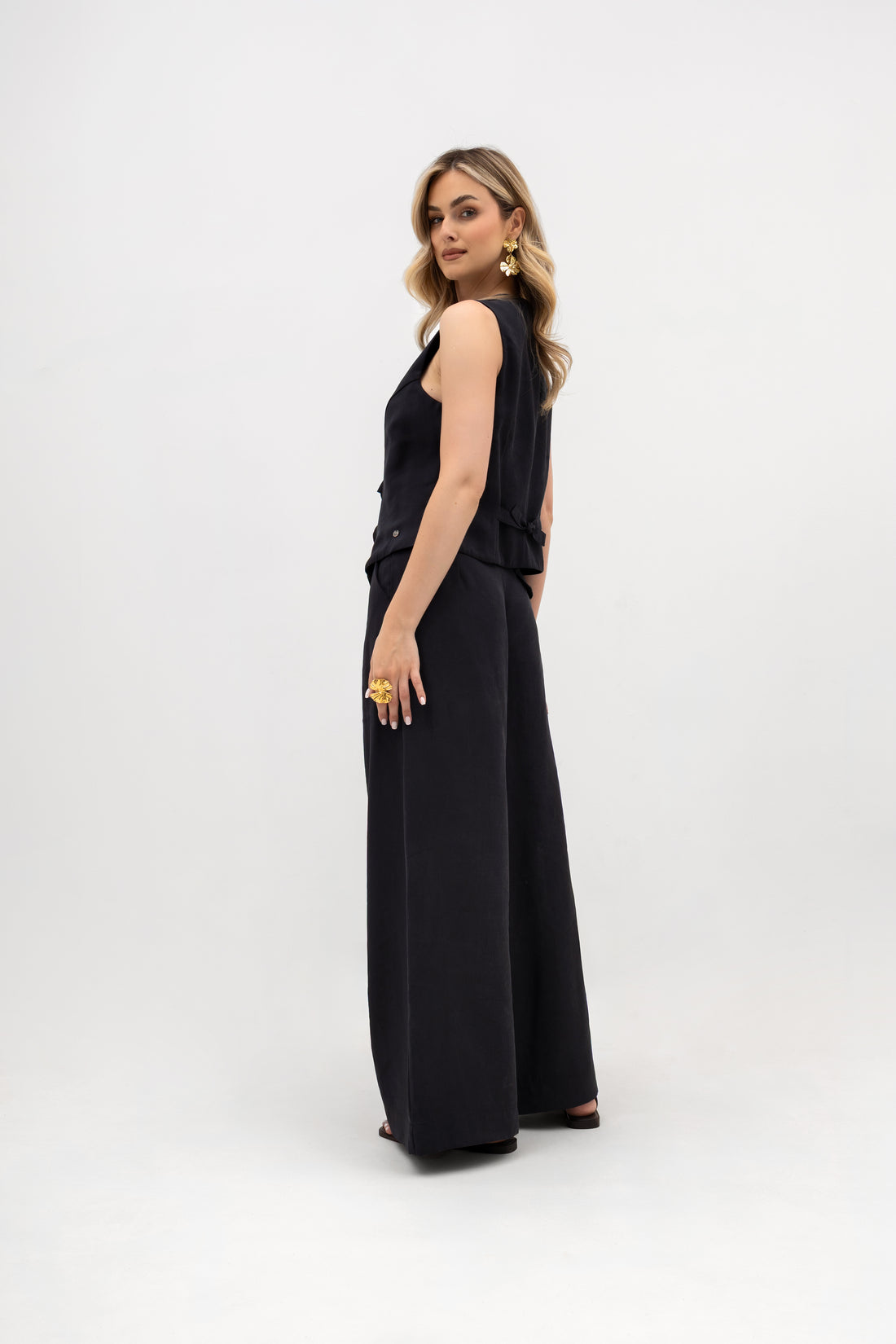 Lniane kuloty 7/8 – szerokie spódnico-spodnie z gumką w pasieLniane kuloty 7/8 – szerokie spódnico-spodnie z gumką w pasie