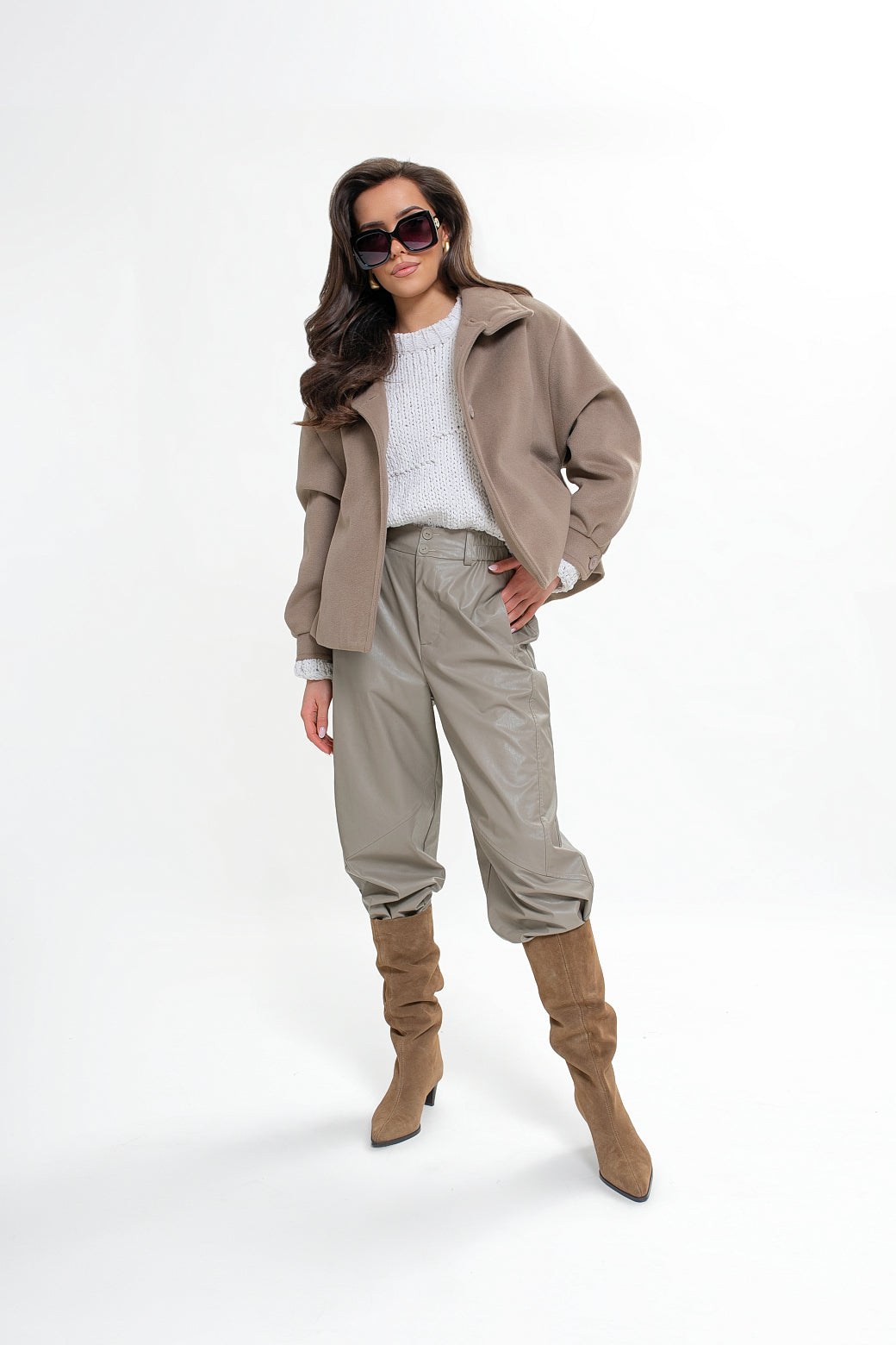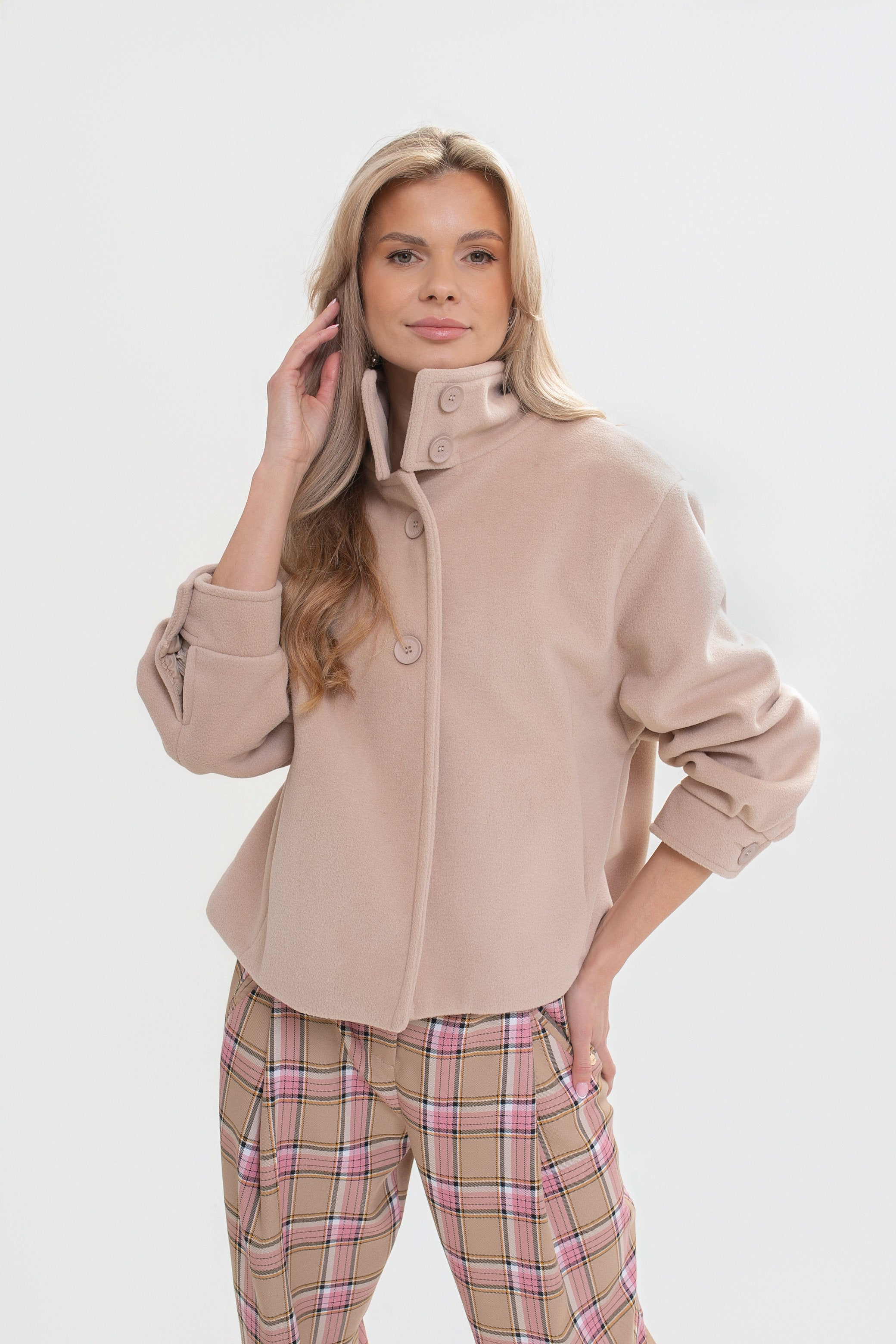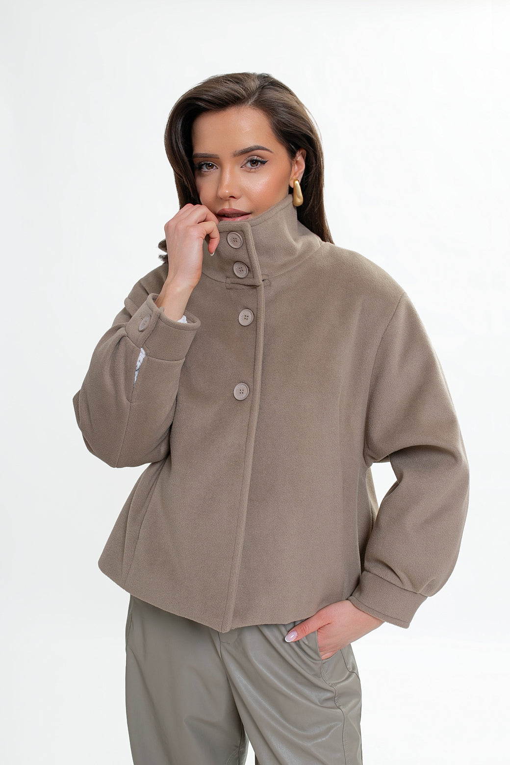 Kurtka damska z flauszu ze stójką i kontrafałdą