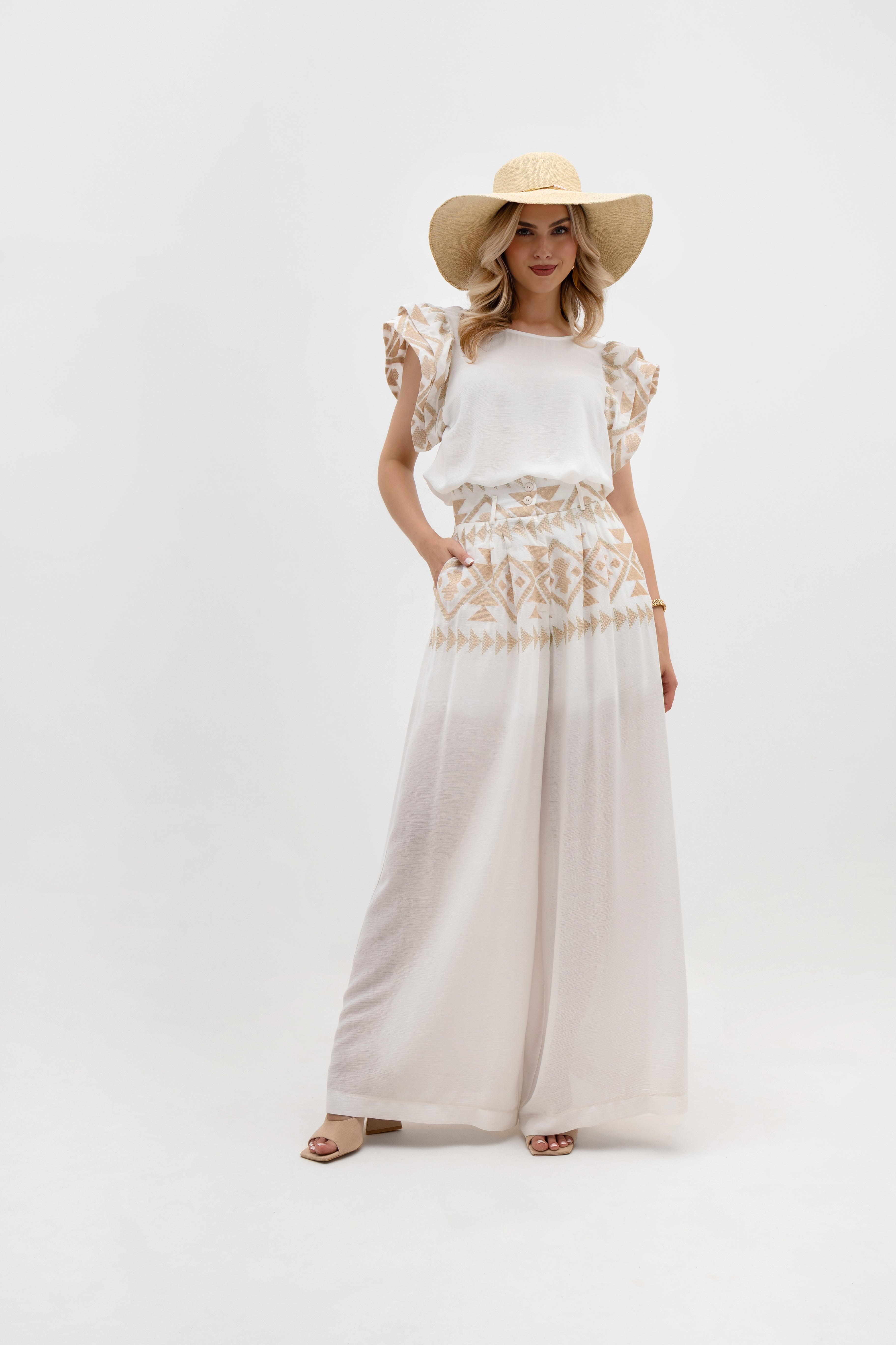 Palazzo-Hosen, Hosen mit weitem Bein, elegante Hosen, bestickte Hosen, Boho-Hosen, Sommerhosen, Hochzeitshosen, Viskosehosen, weiße Hosen, schwarze Hosen, Hosen mit hohem Bund, Damen-Sets, Hosen für besondere Anlässe, weite Hosen.