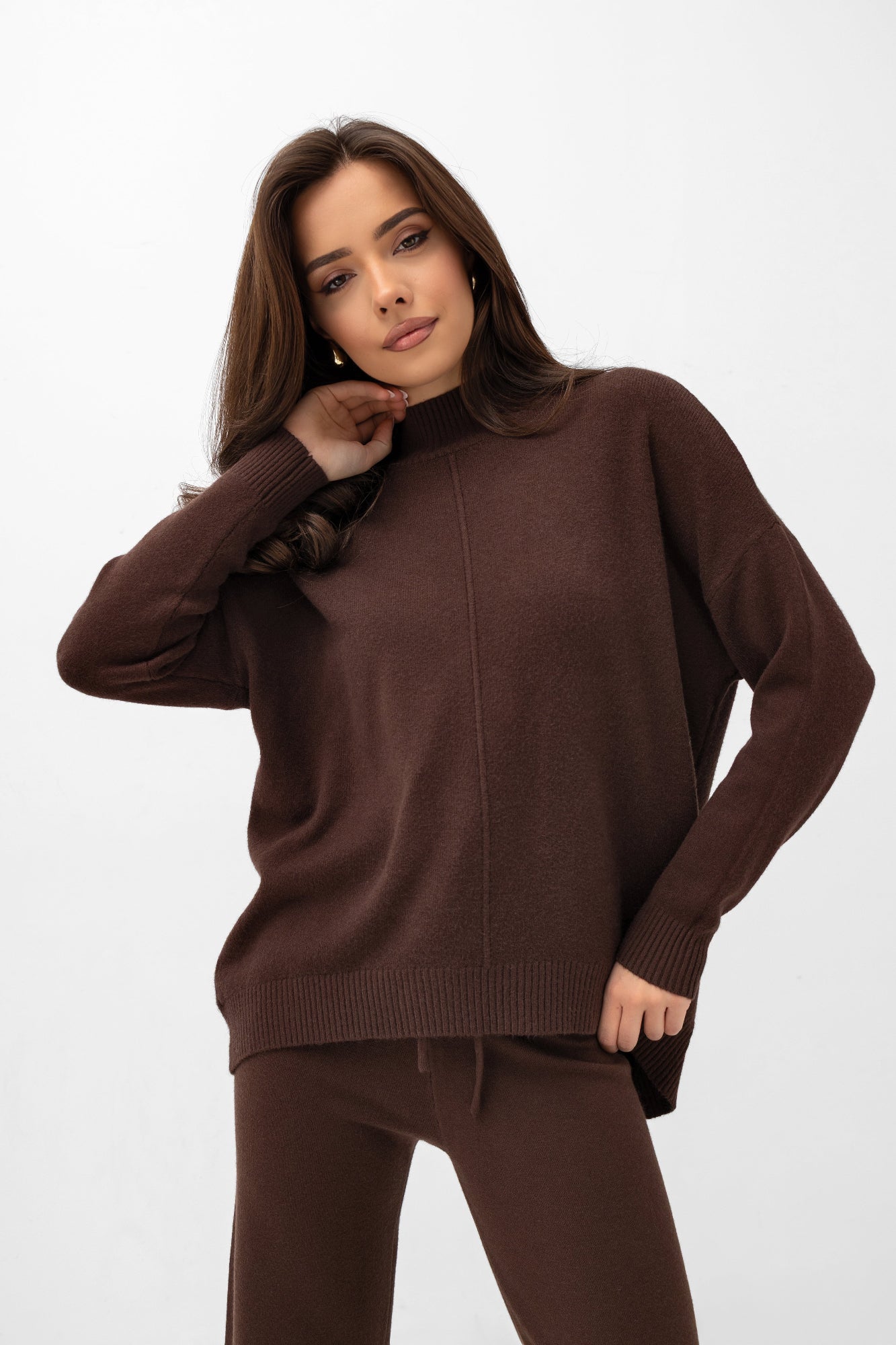 This sweater set from the Bastet collection by Agnieszka Włodarczyk is a unique blend of comfort, elegance, and modern design. Made from a soft-touch fabric (35% viscose, 35% polyamide, 20% acrylic, 10% elastane), it hugs the figure and ensures comfort in every situation.
