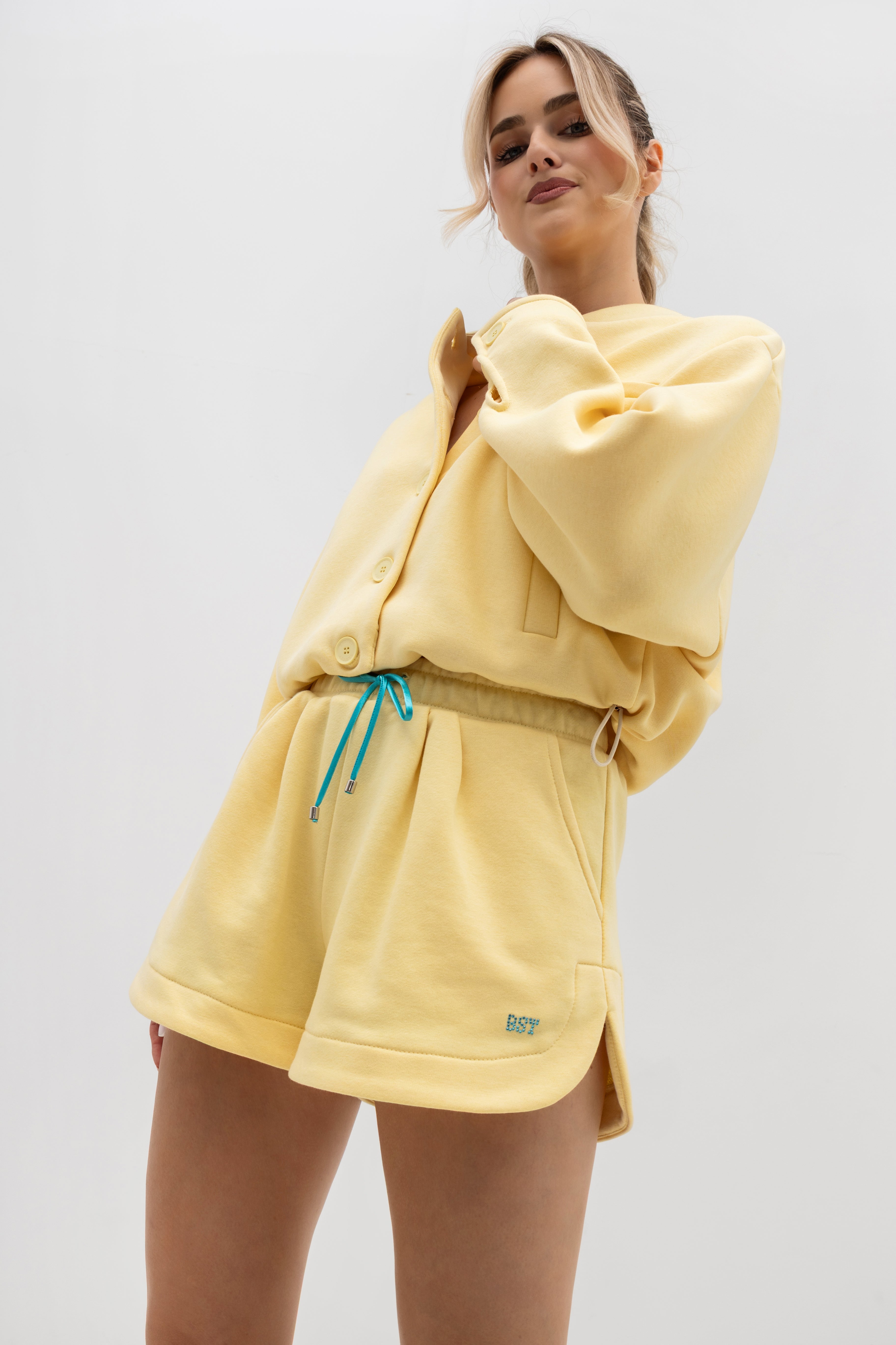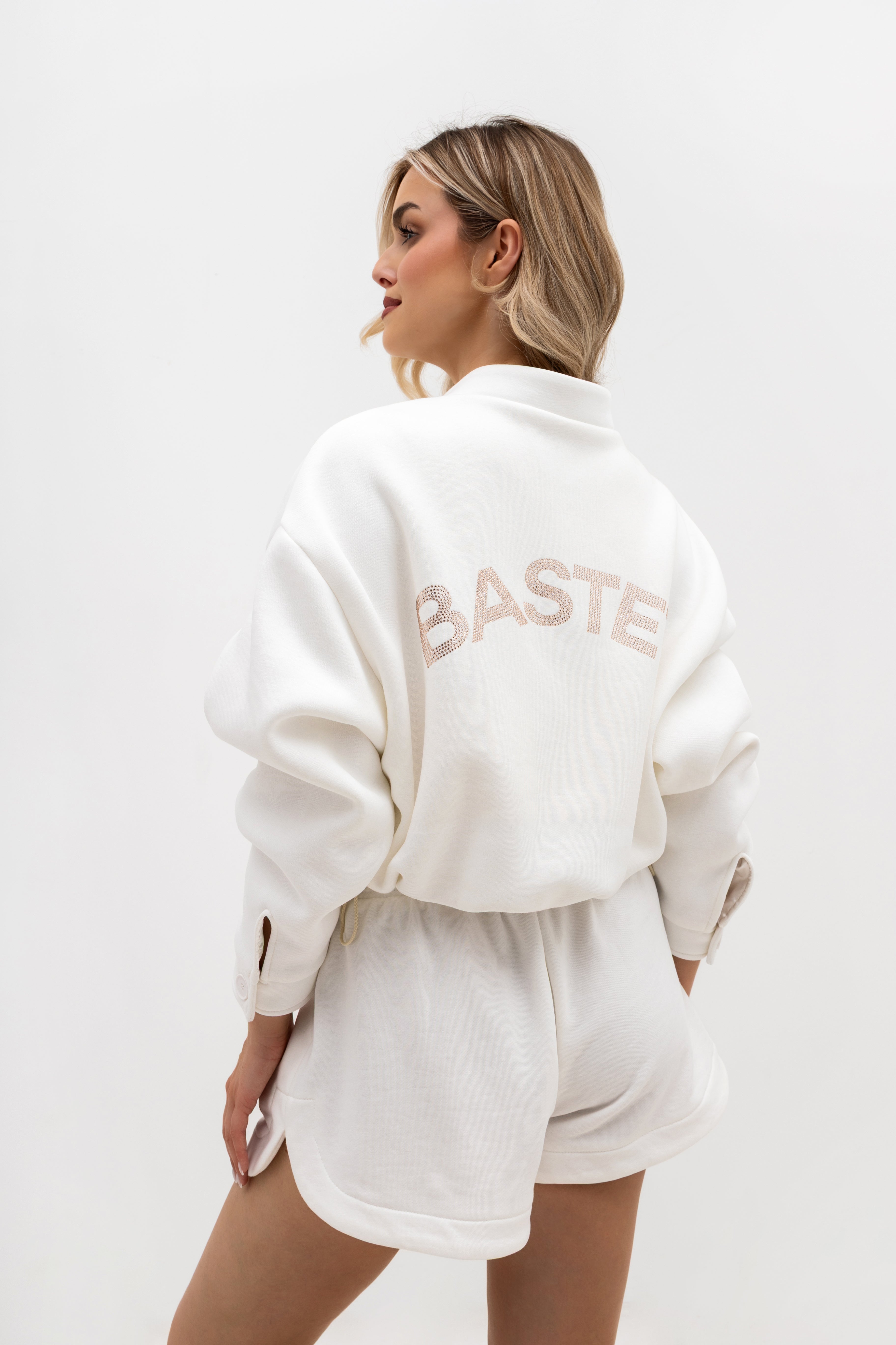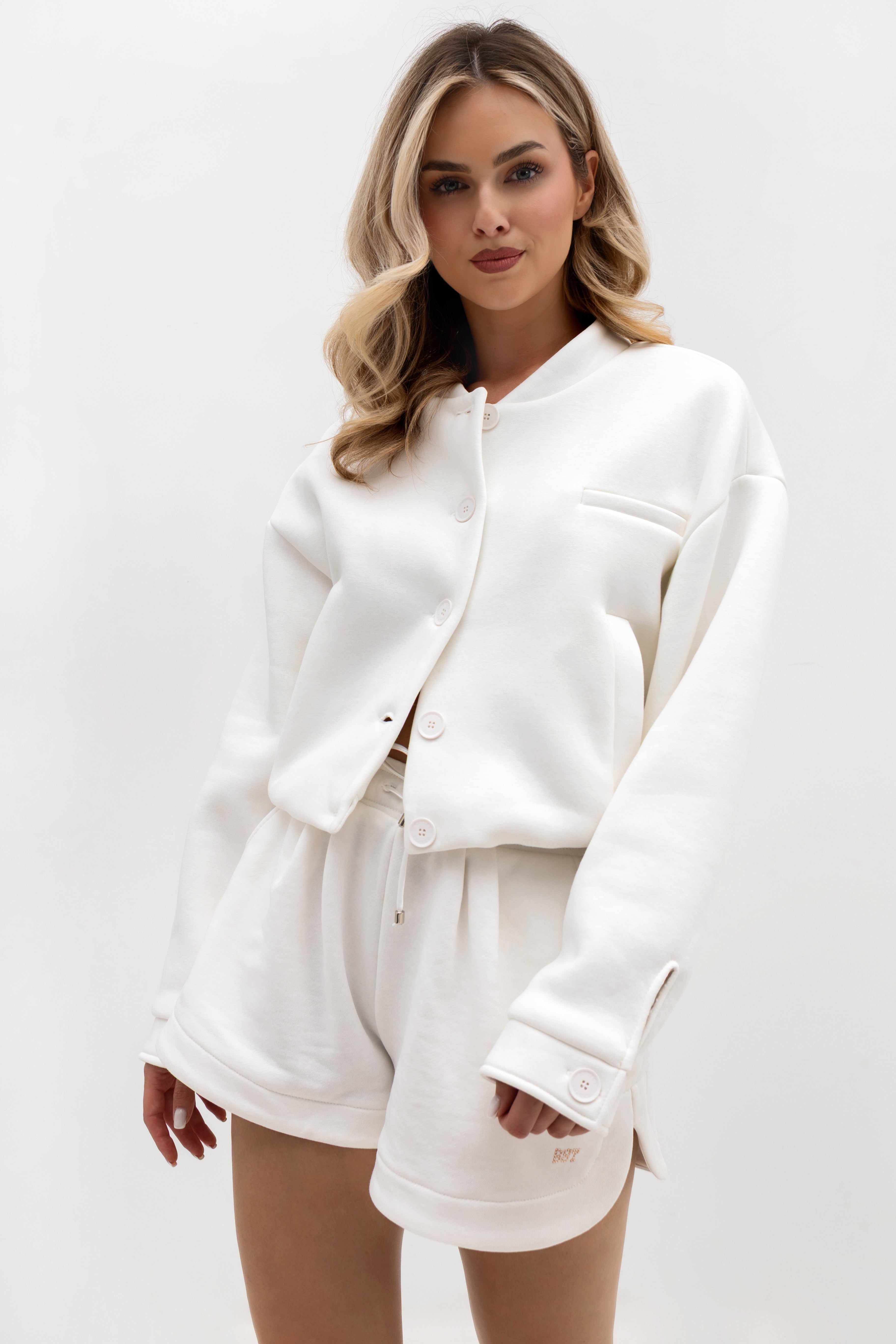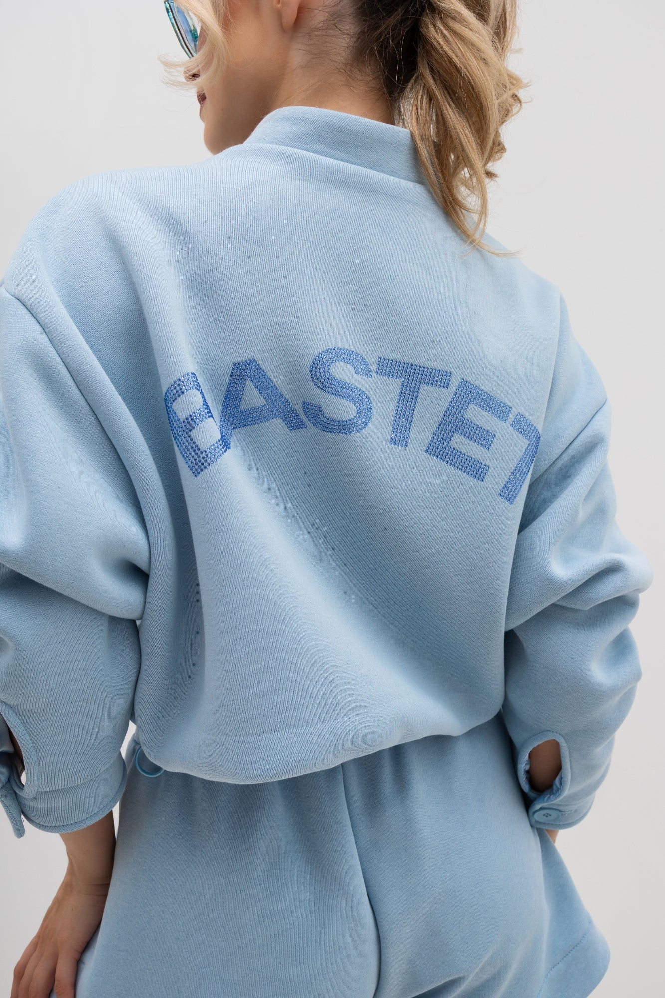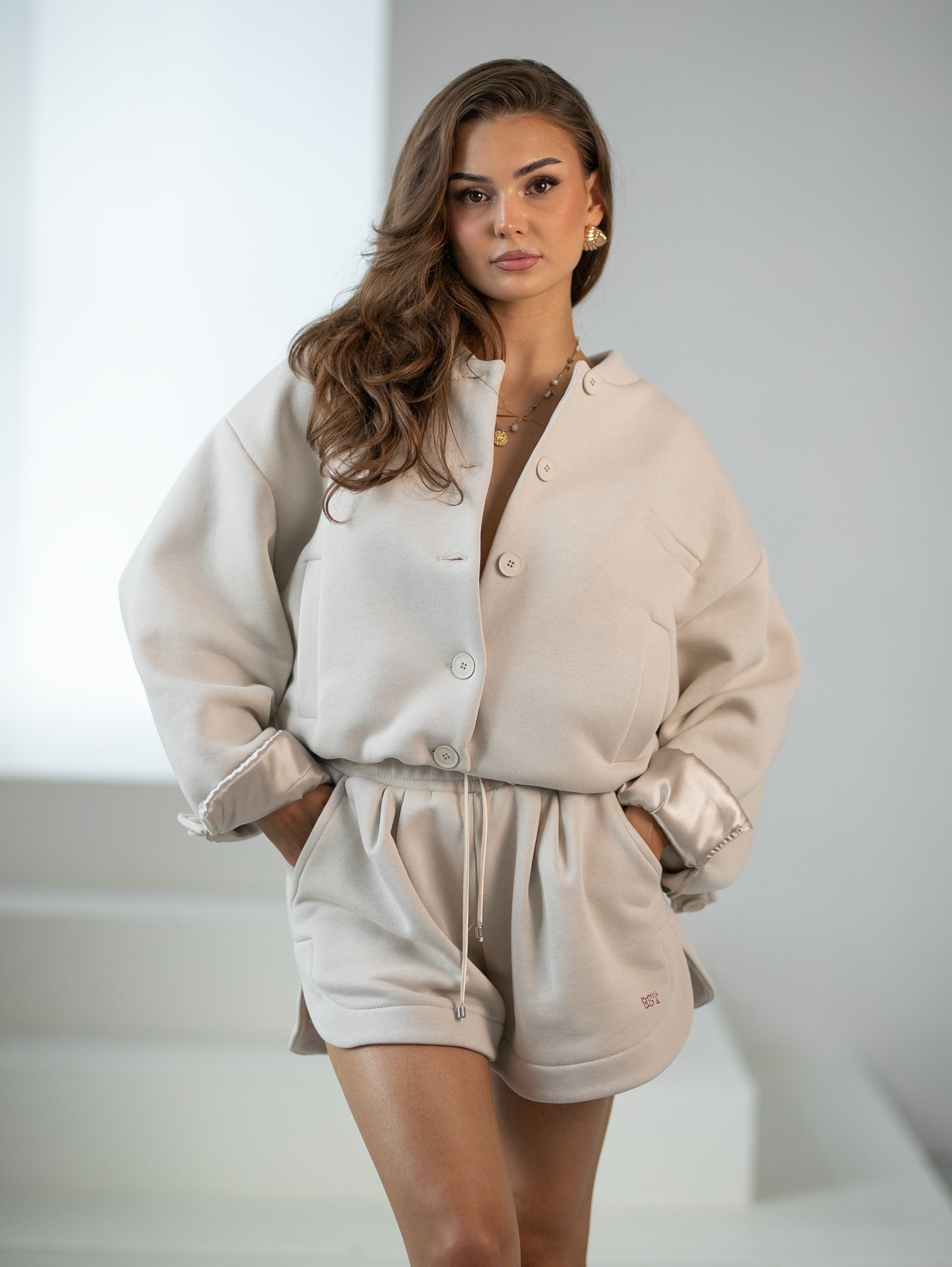 This modern, sweatshirt-style bomber jacket is the perfect blend of casual comfort and designer style. Featuring a button-down closure and an elegant stand-up collar and cuffs, this jacket is both stylish and comfortable. An adjustable hem with an internal elastic band allows for a tailored fit, while the lining enhances durability and comfort.