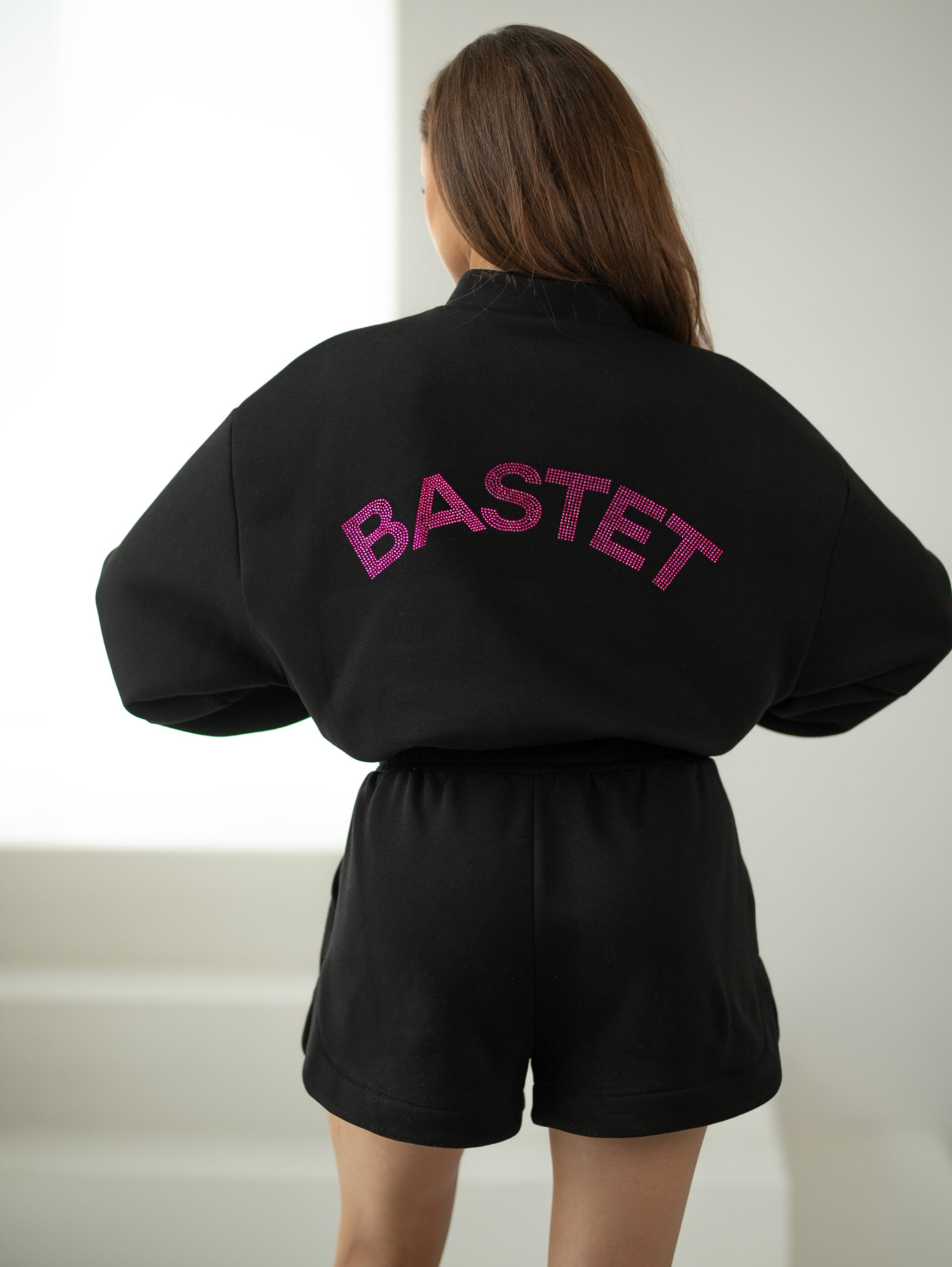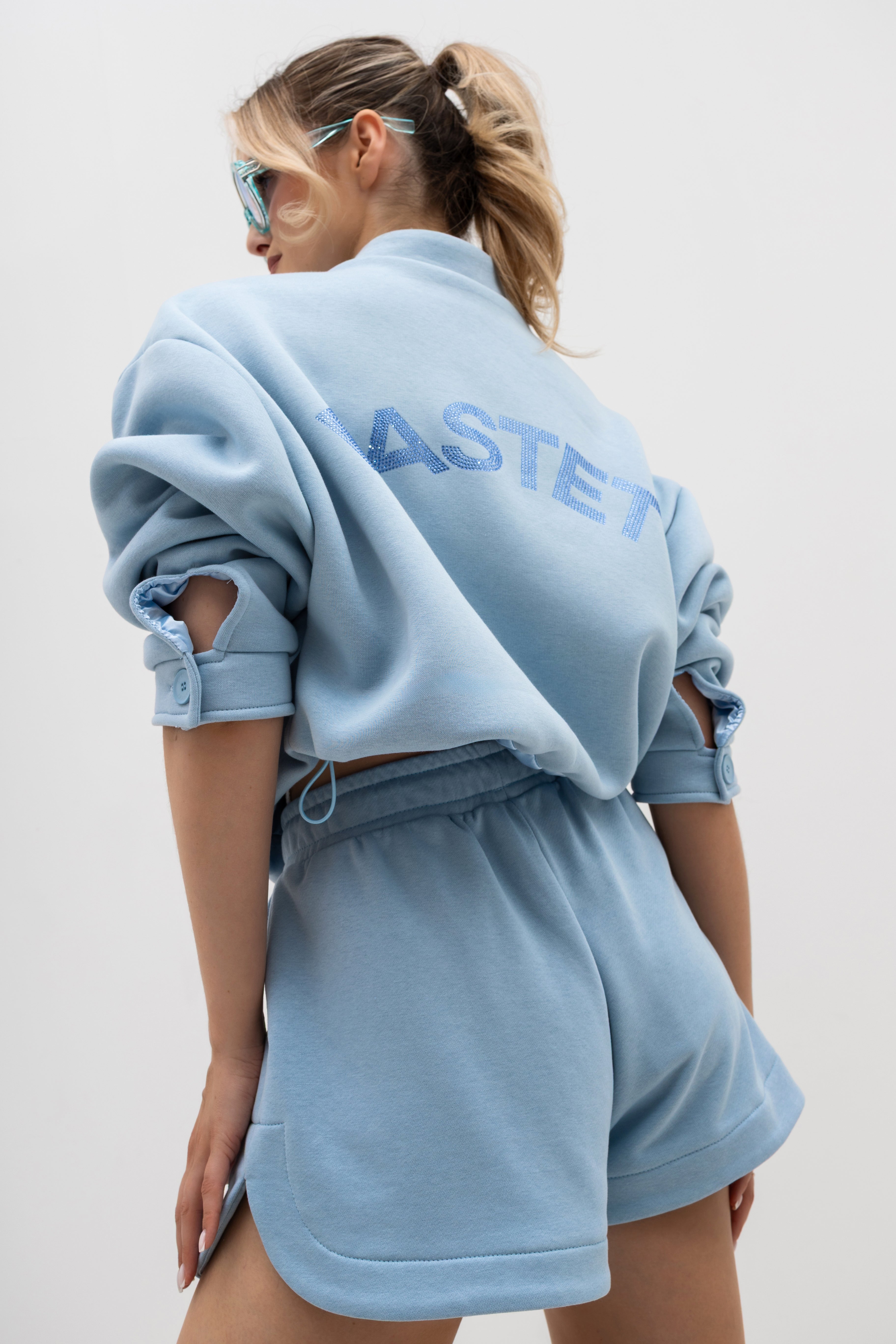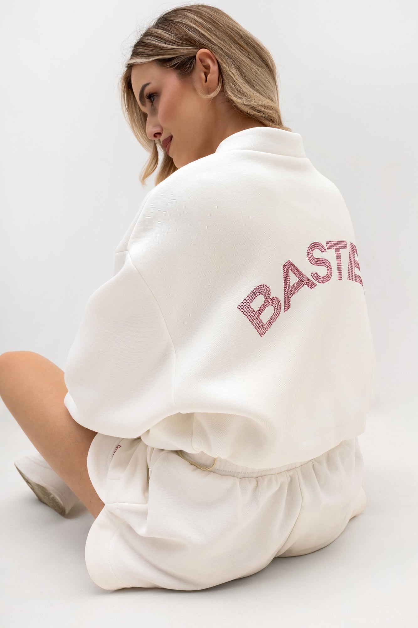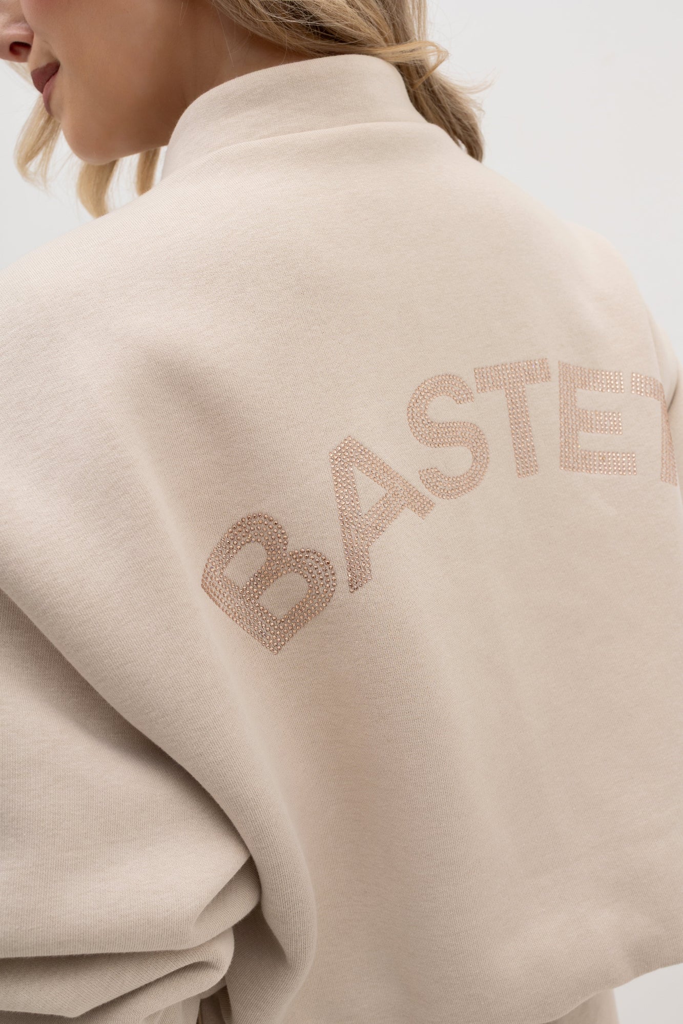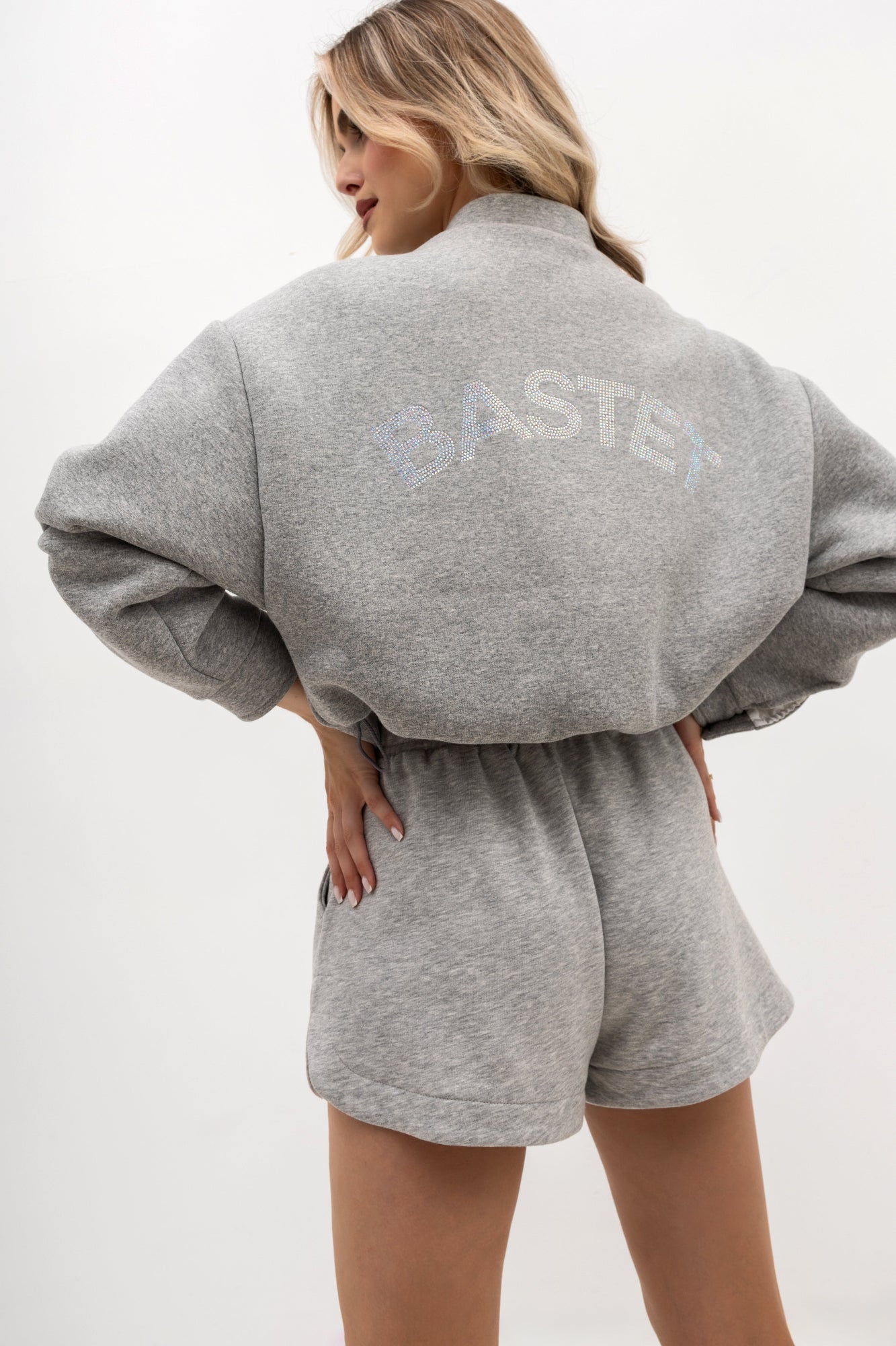 A subtle rhinestone logo is embellished on the back of the jacket, adding a touch of fashionable flair. It's a great option for both joggers and more balanced outfits, such as with shorts or a midi dress.