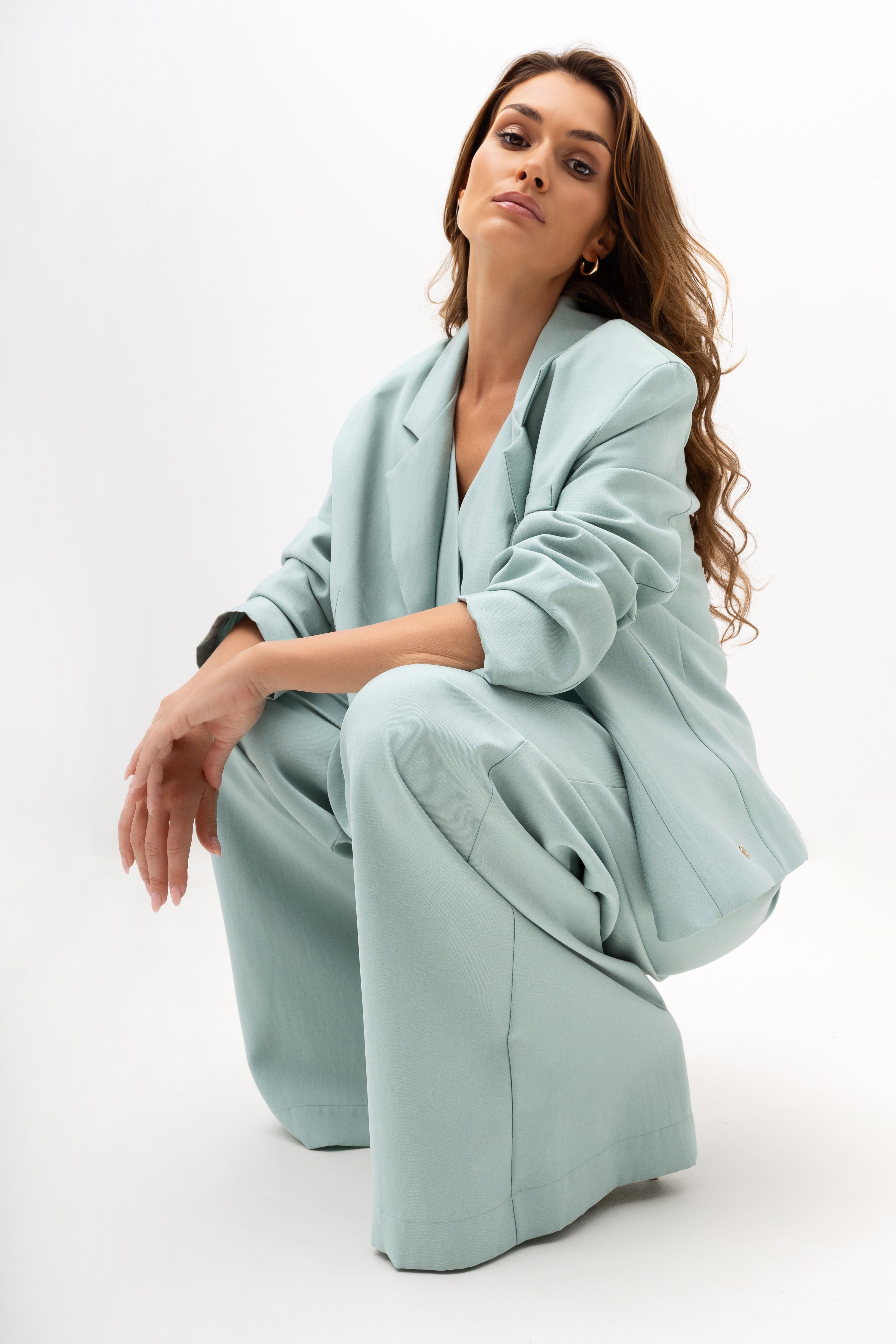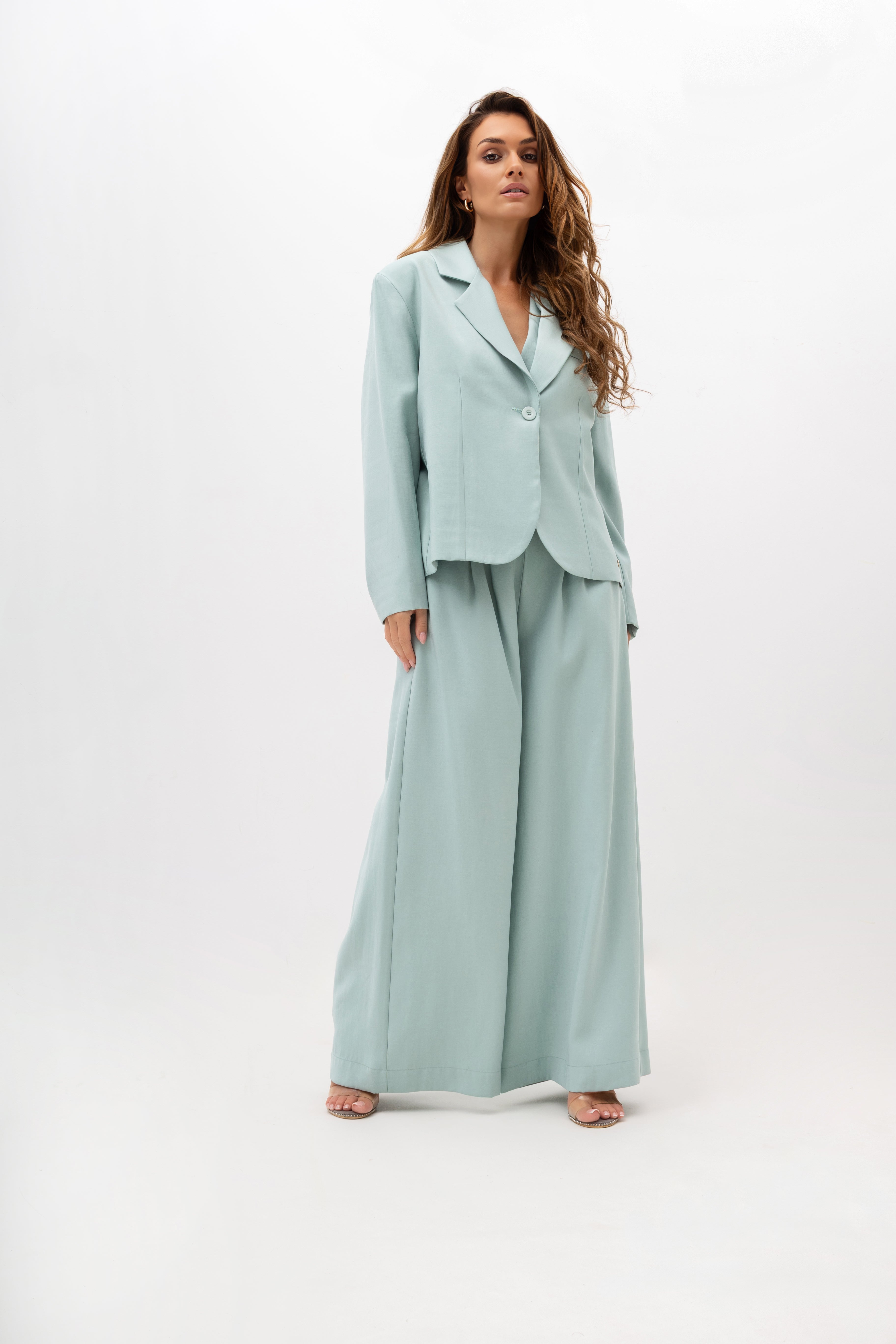 This model is made of high-quality fabric, predominantly viscose (79%) with the addition of polyester (13%) and nylon (8%), giving the jacket a beautiful appearance and durability. It pairs perfectly with elegant trousers in the same shade to create a complete suit, but it also looks impressive paired with jeans and a classic top – a perfect choice for everything from the office to evening meetings.