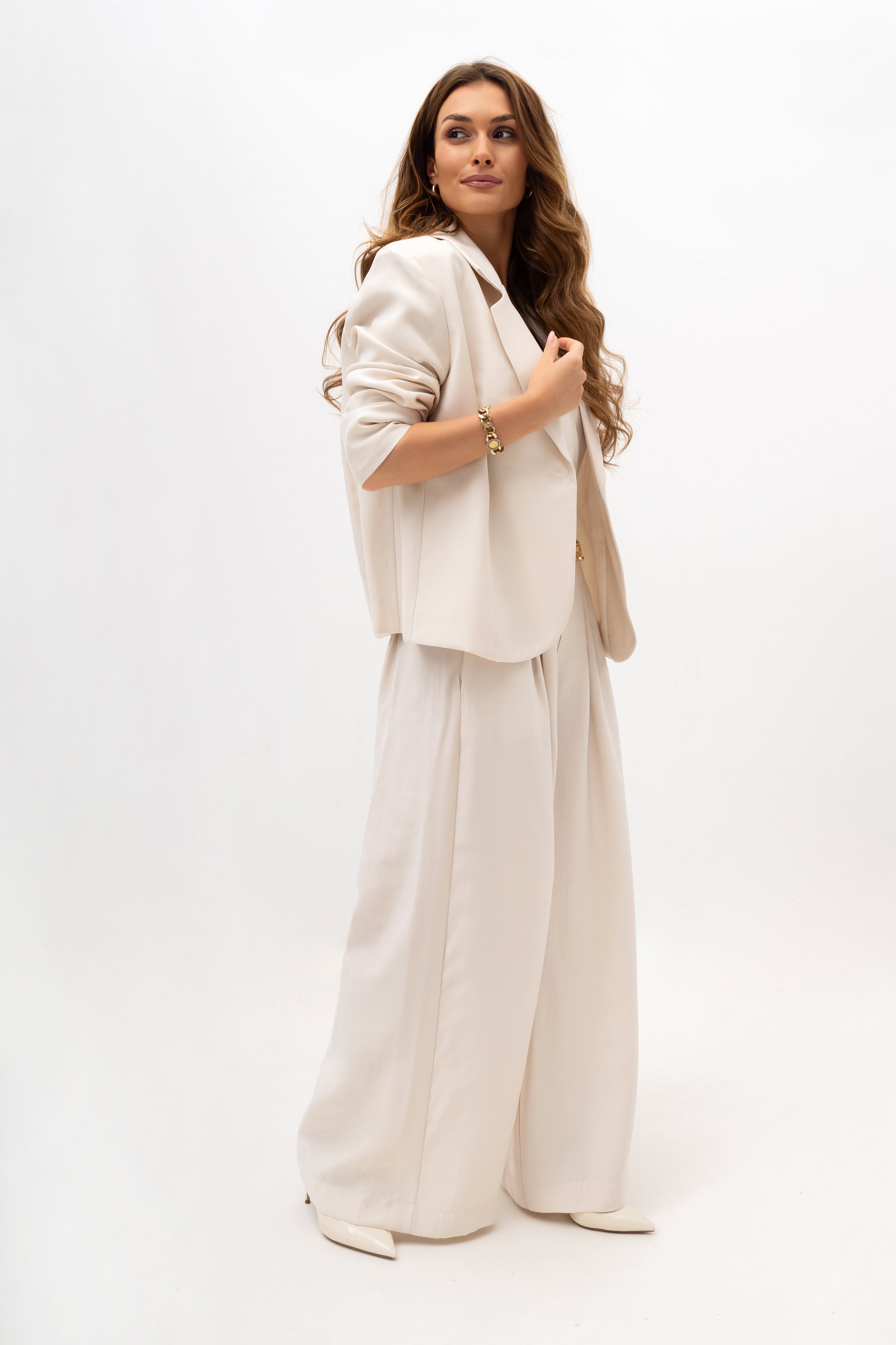 This elegant women's blazer with lapels combines classic style with a modern approach to fashion. Inspired by the timeless form of the blazer, the cut has been meticulously crafted to accentuate the feminine silhouette while ensuring comfort.