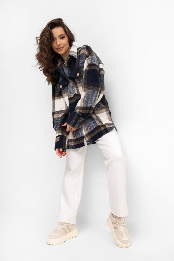 Koszula w dużą, wyrazistą kratę to połączenie klasyki i nowoczesnego stylu w jednym. Idealna na sezon jesienno-zimowy, sprawdzi się zarówno jako lekka kurtka, jak i narzutka do codziennych stylizacji.