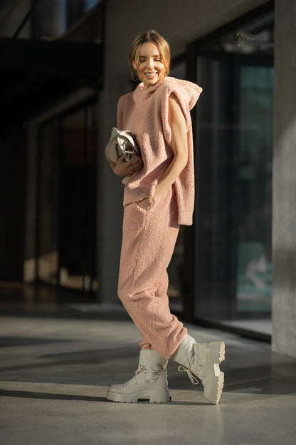 Kamizelka z kolekcji Bastet by Agnieszka Włodarczyk to idealne połączenie wygody i modnego designu. Wykonana z miękkiego materiału typu baranek, otula przyjemnym ciepłem i dodaje charakteru każdej stylizacji. Doskonale sprawdzi się jako uzupełnienie kompletu z tej samej linii lub w duecie z golfem, koszulą czy dopasowanym body.