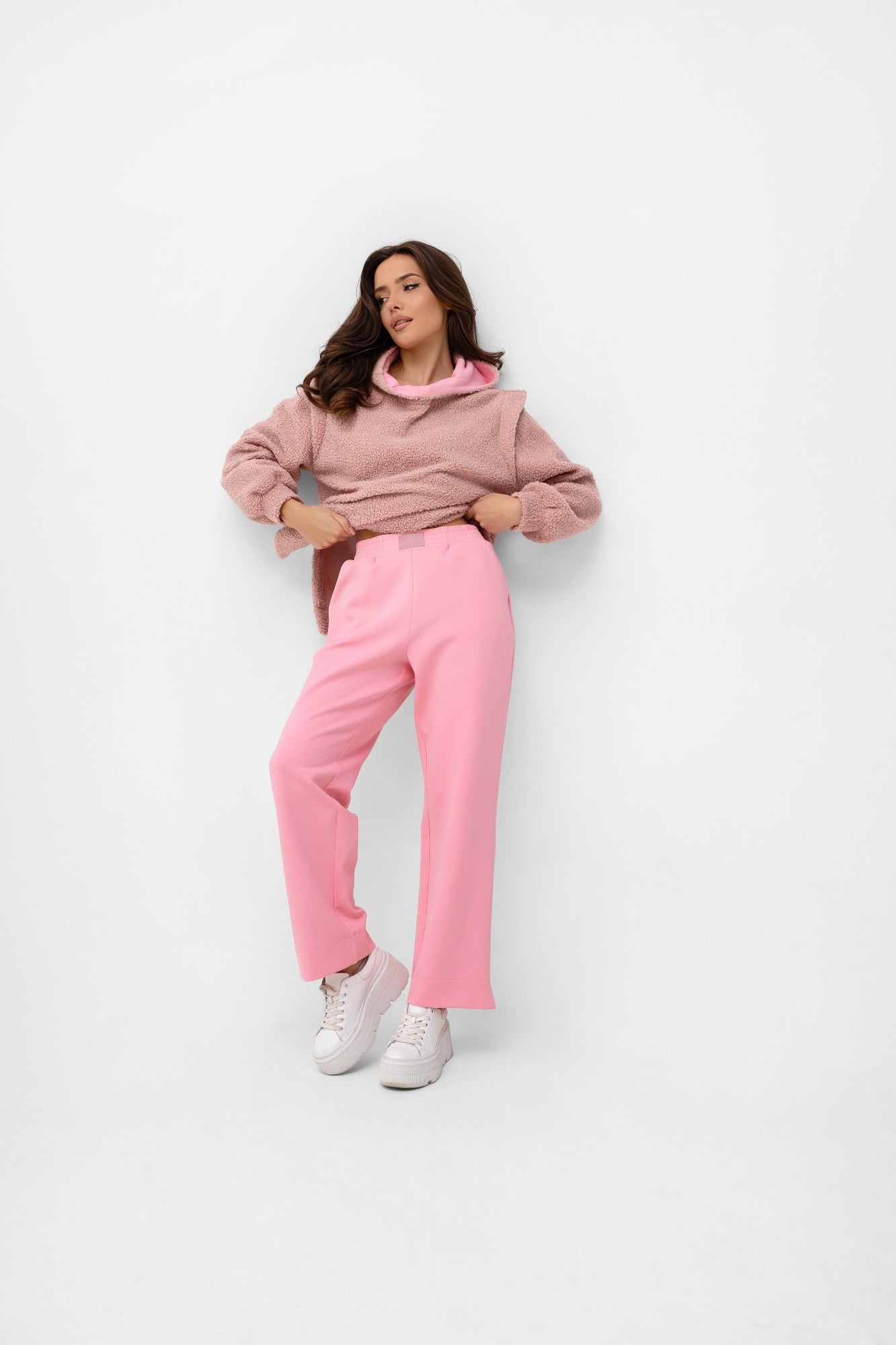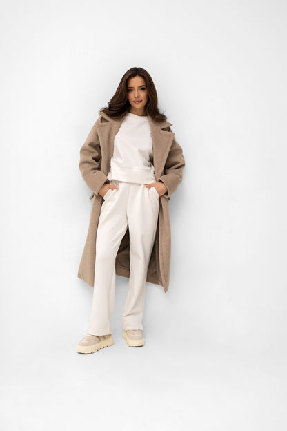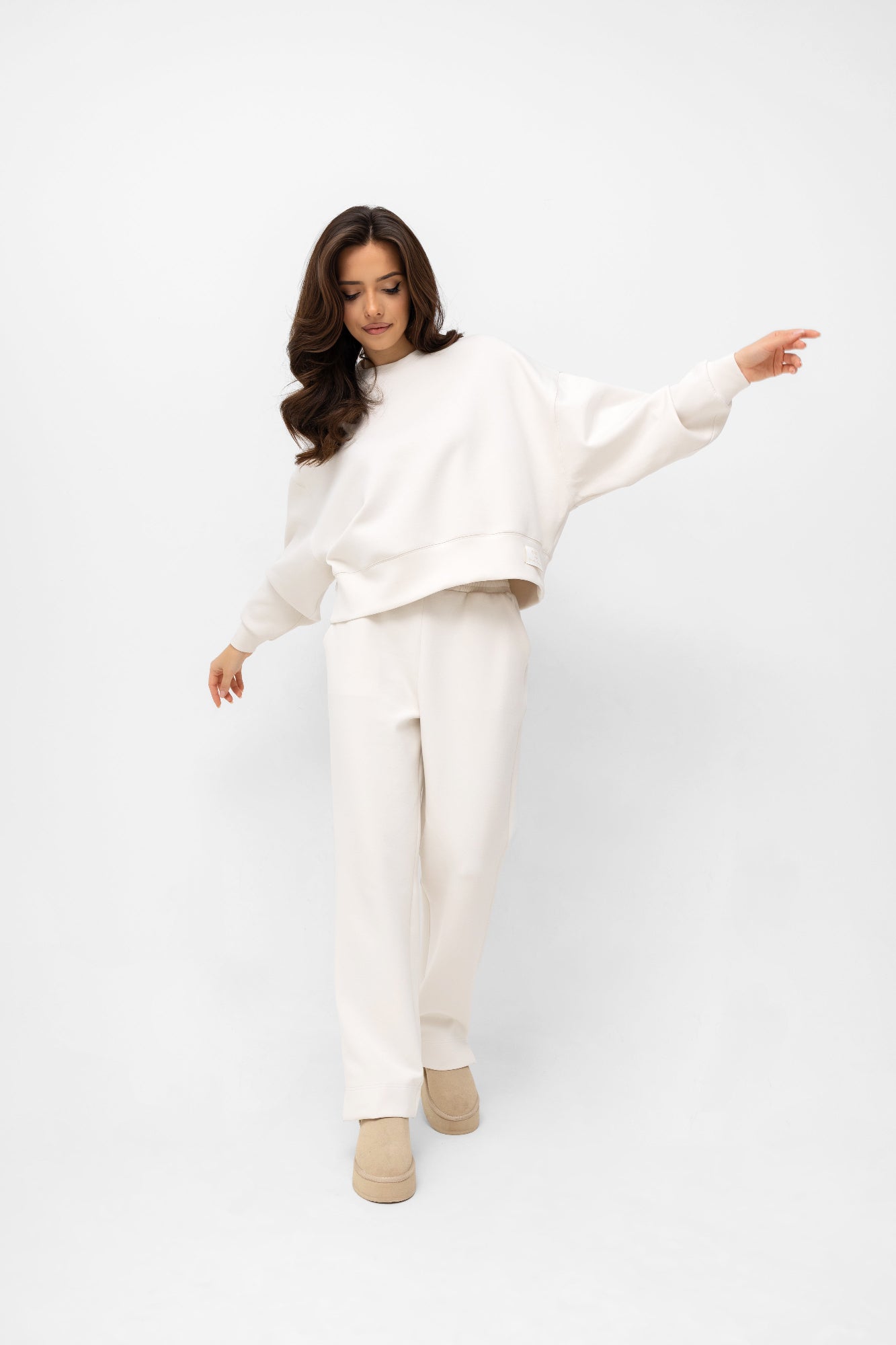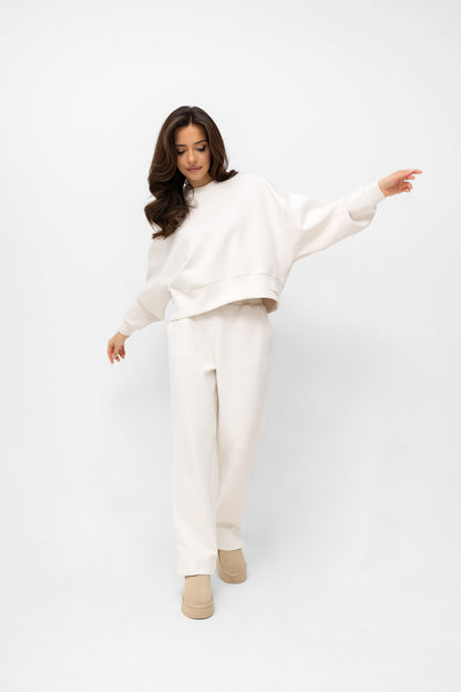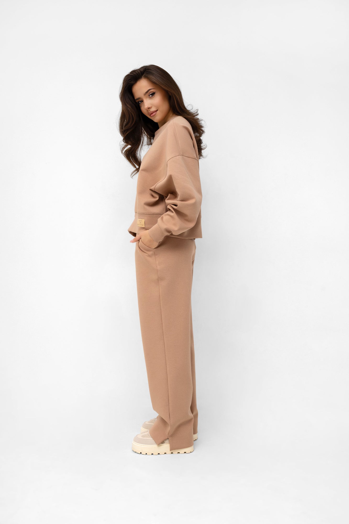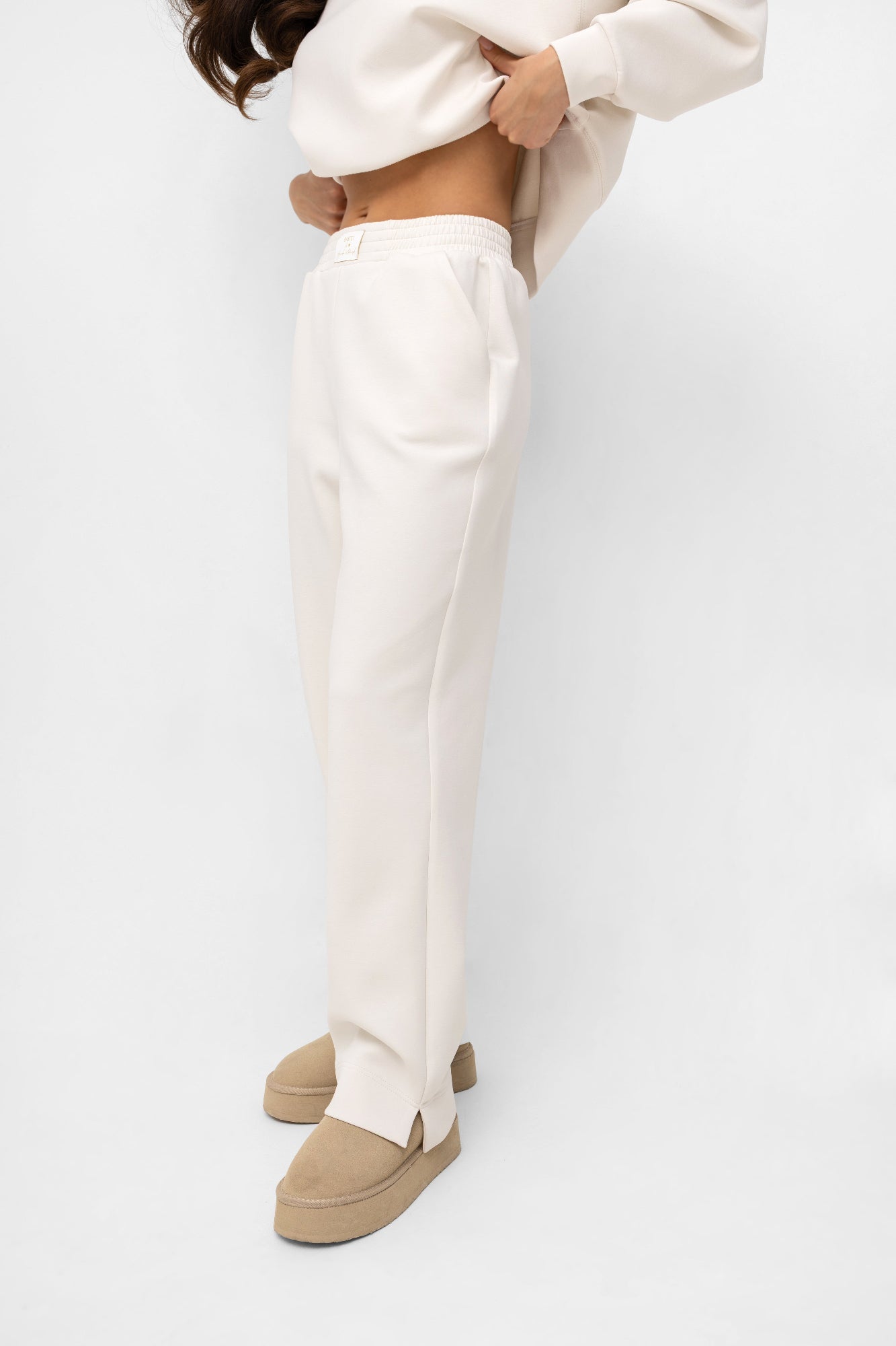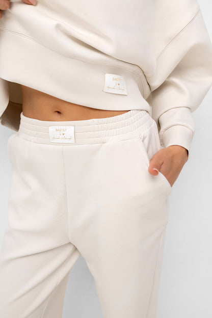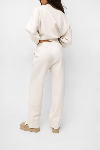Stwórz idealny komplet! Te spodnie zostały stworzone, by tworzyć perfekcyjny duet z naszą bluzą dzianinową z tej samej kolekcji. Razem tworzą spójny, monochromatyczny komplet dresowy, który jest synonimem niewymuszonego szyku.