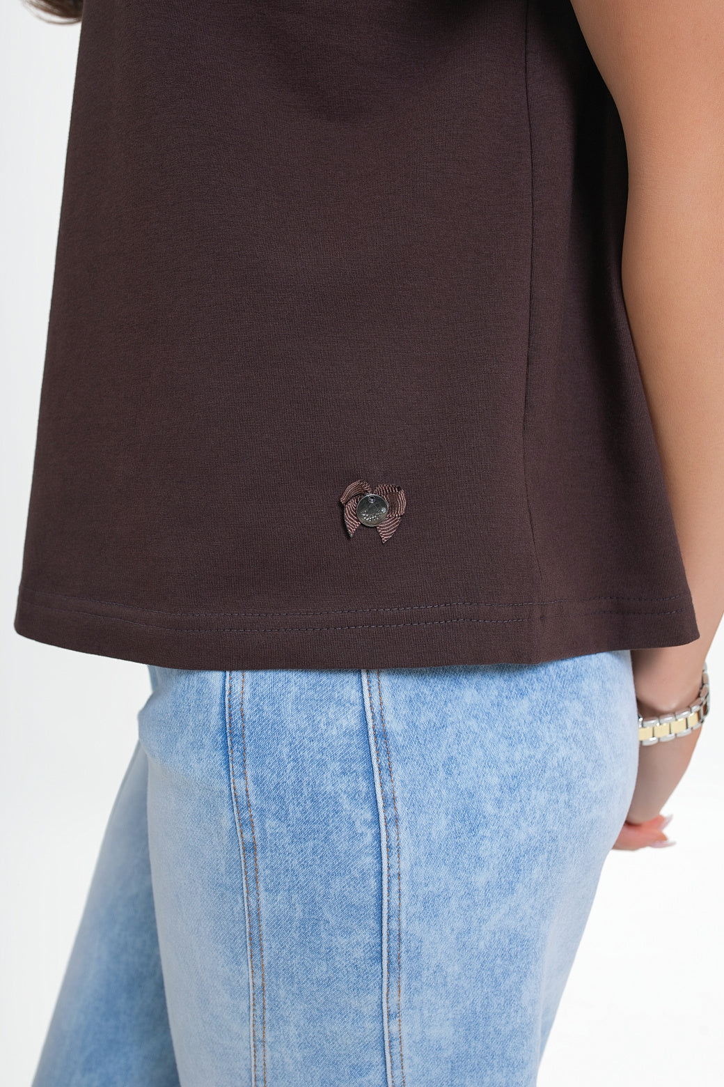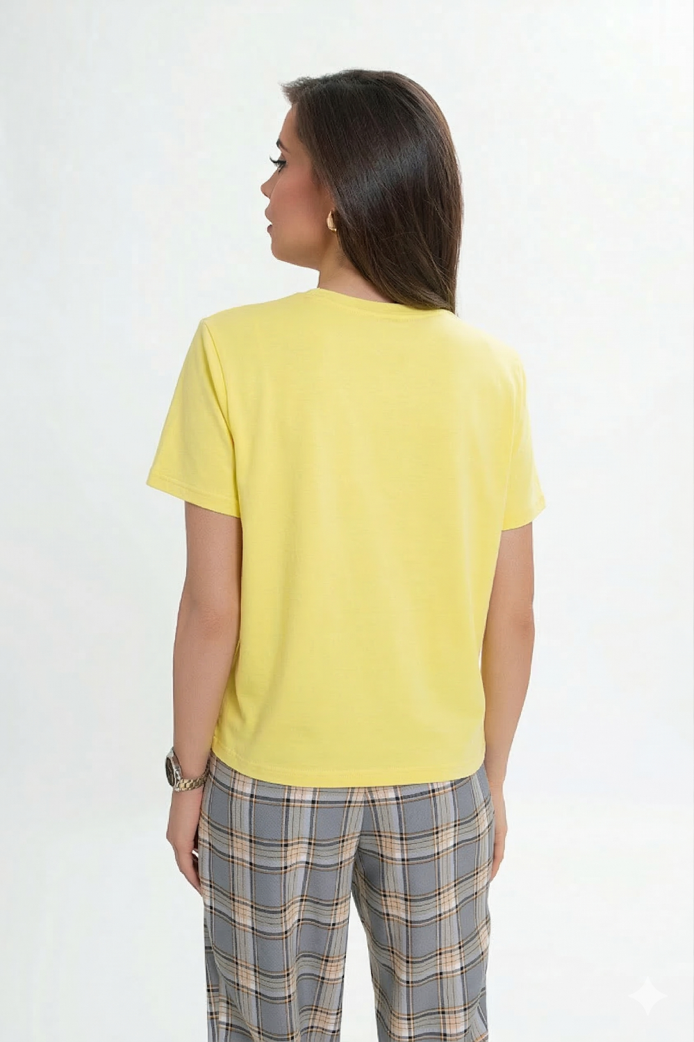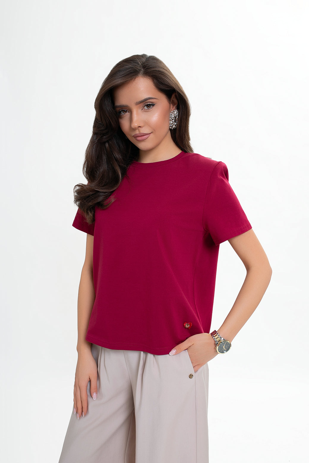 Krótki rękaw oraz prosty krój przodu i tyłu sprawiają, że model jest uniwersalny i łatwy do stylizowania. Bluzka świetnie wygląda w połączeniu z jeansami, eleganckimi spodniami, spódnicą czy pod marynarką.