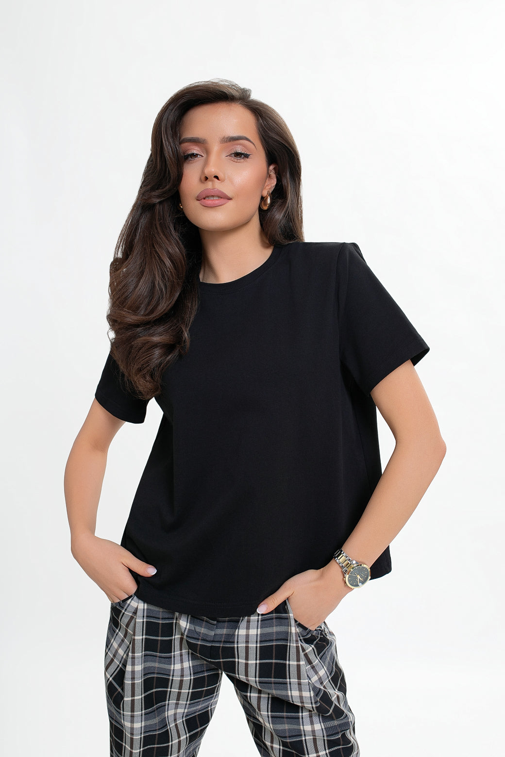 Bawełniana bluzka z poduszkami na ramionach – elegancki basic