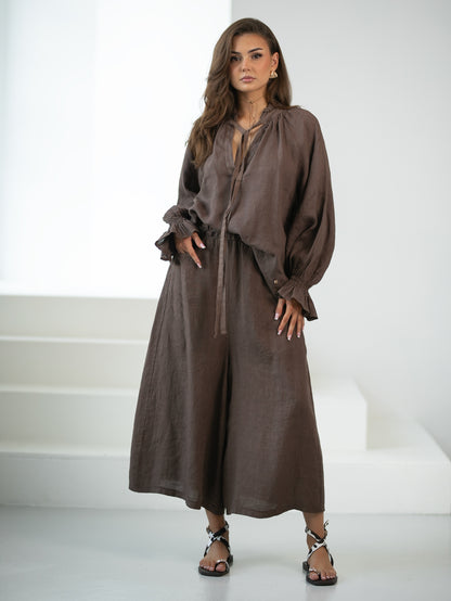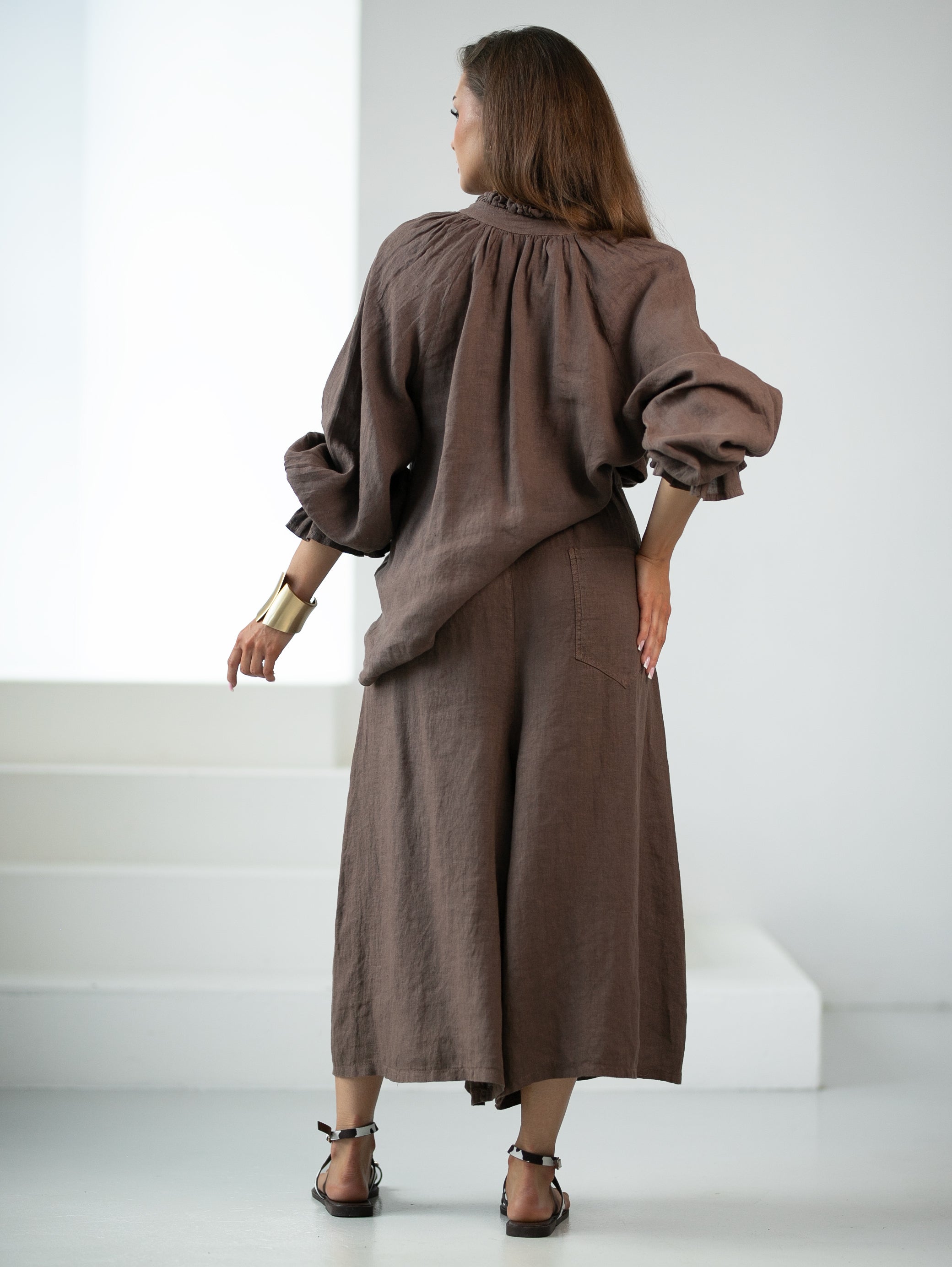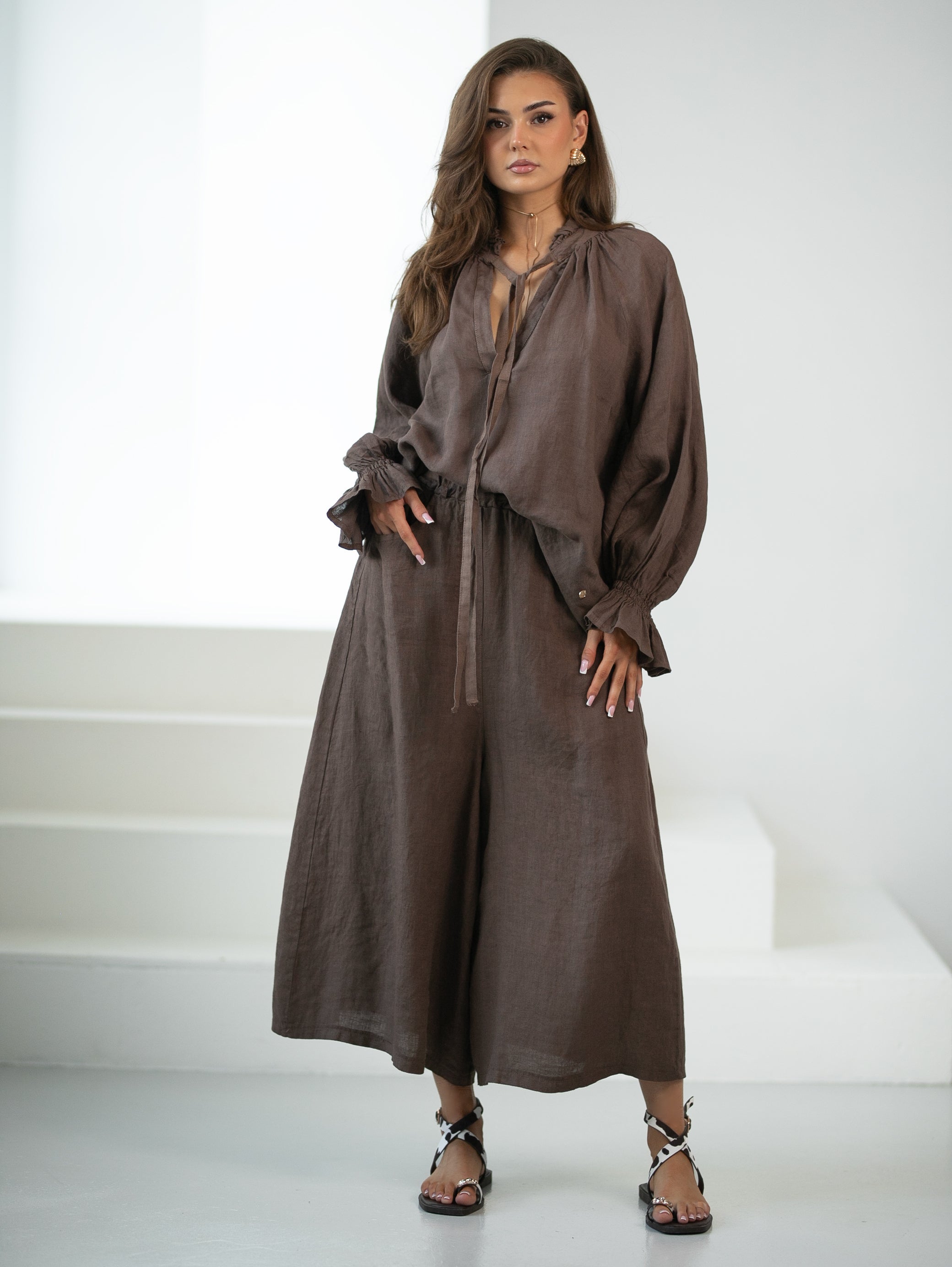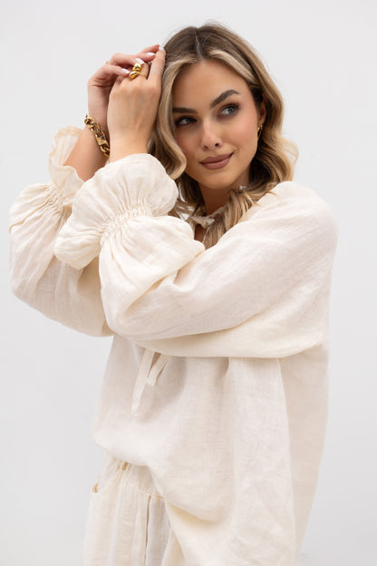 Lniana koszula z falbanką i marszczeniem – naturalna elegancja w stylu boho